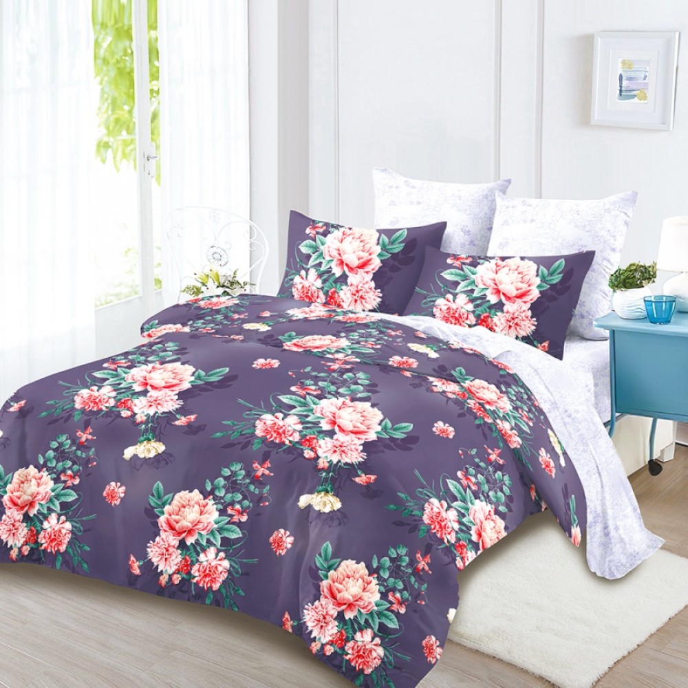 Lenjerie Pat Dublu, FINET, 6 piese, Mov, Flori, Super Design Pucioasa, cod produs: SDP-FNC-32