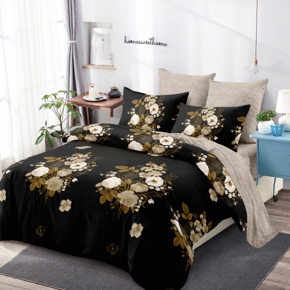 Lenjerie Pat Dublu, FINET, 6 piese, Negru, Bej, Flori, Super Design Pucioasa, cod produs: SDP-FNC-544