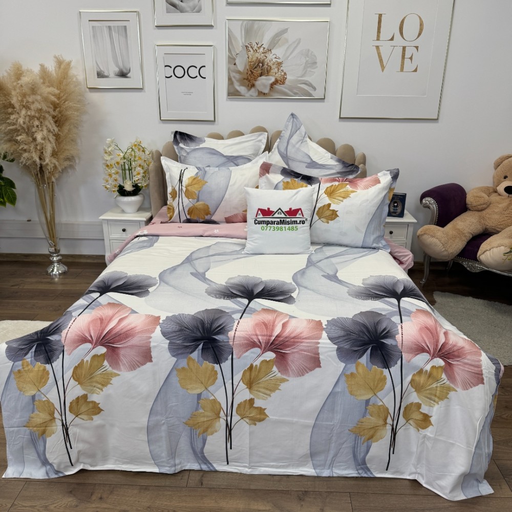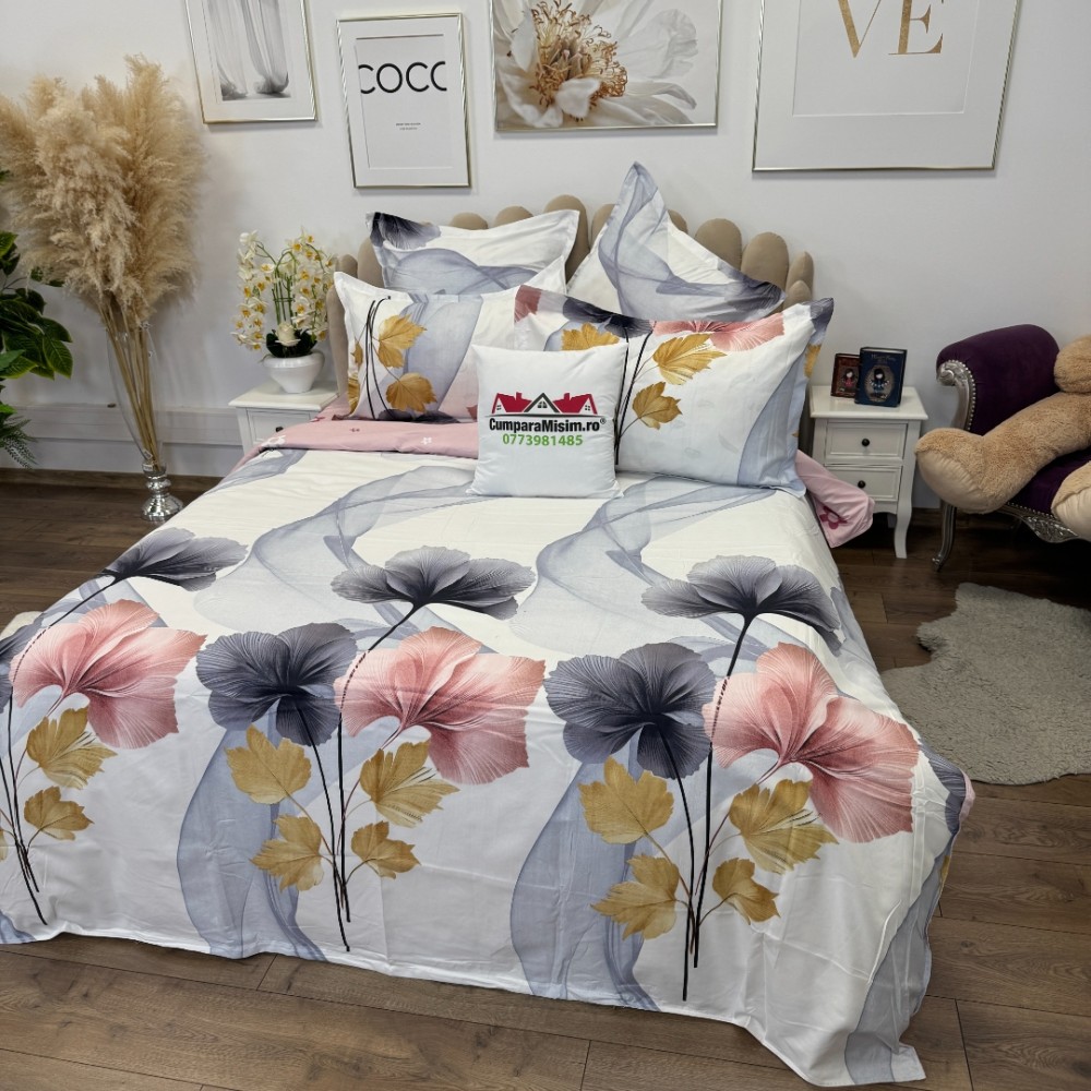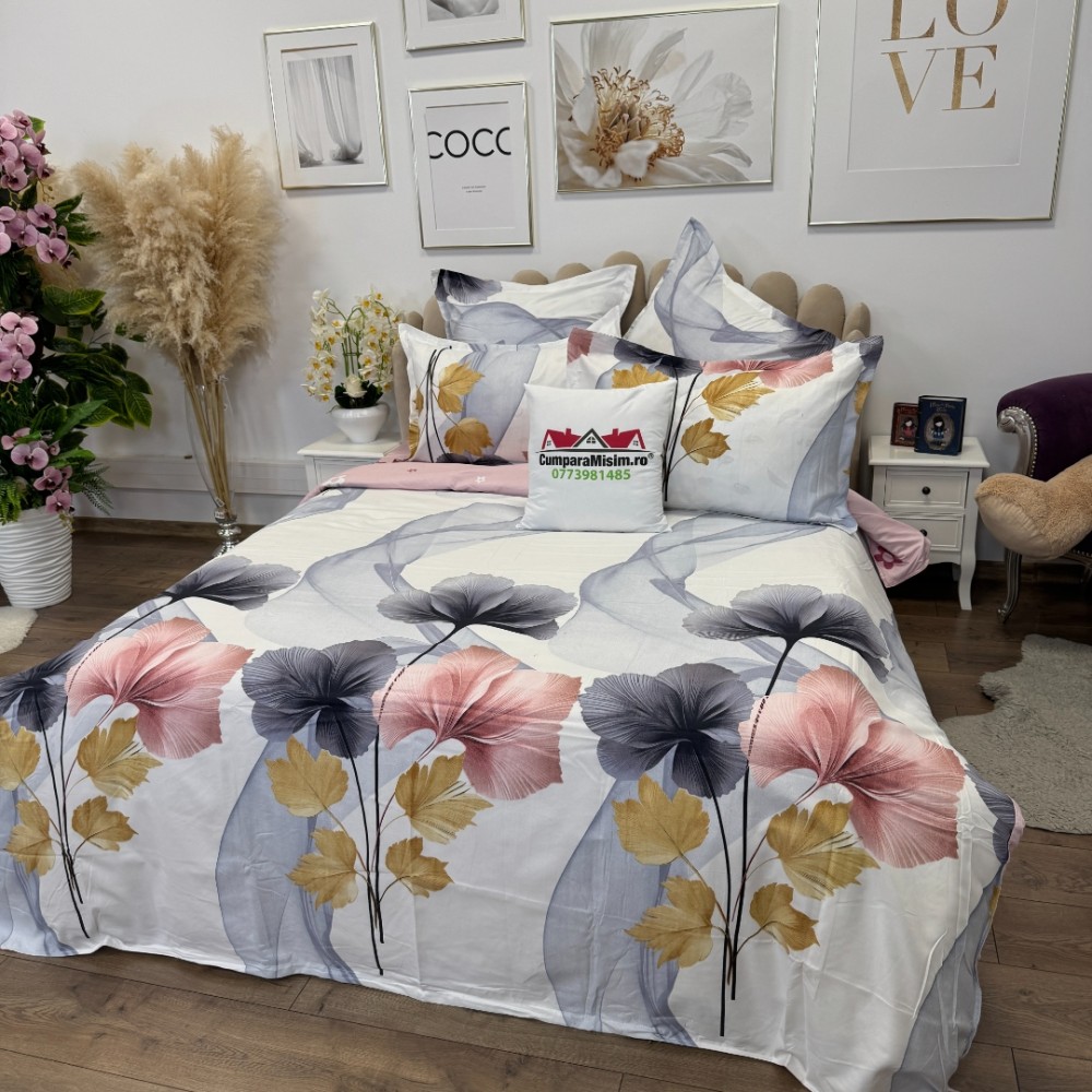 Lenjerie pat dublu, Finet, 6 piese, Roz, flori, Talo, cod produs: SKT-FN-62