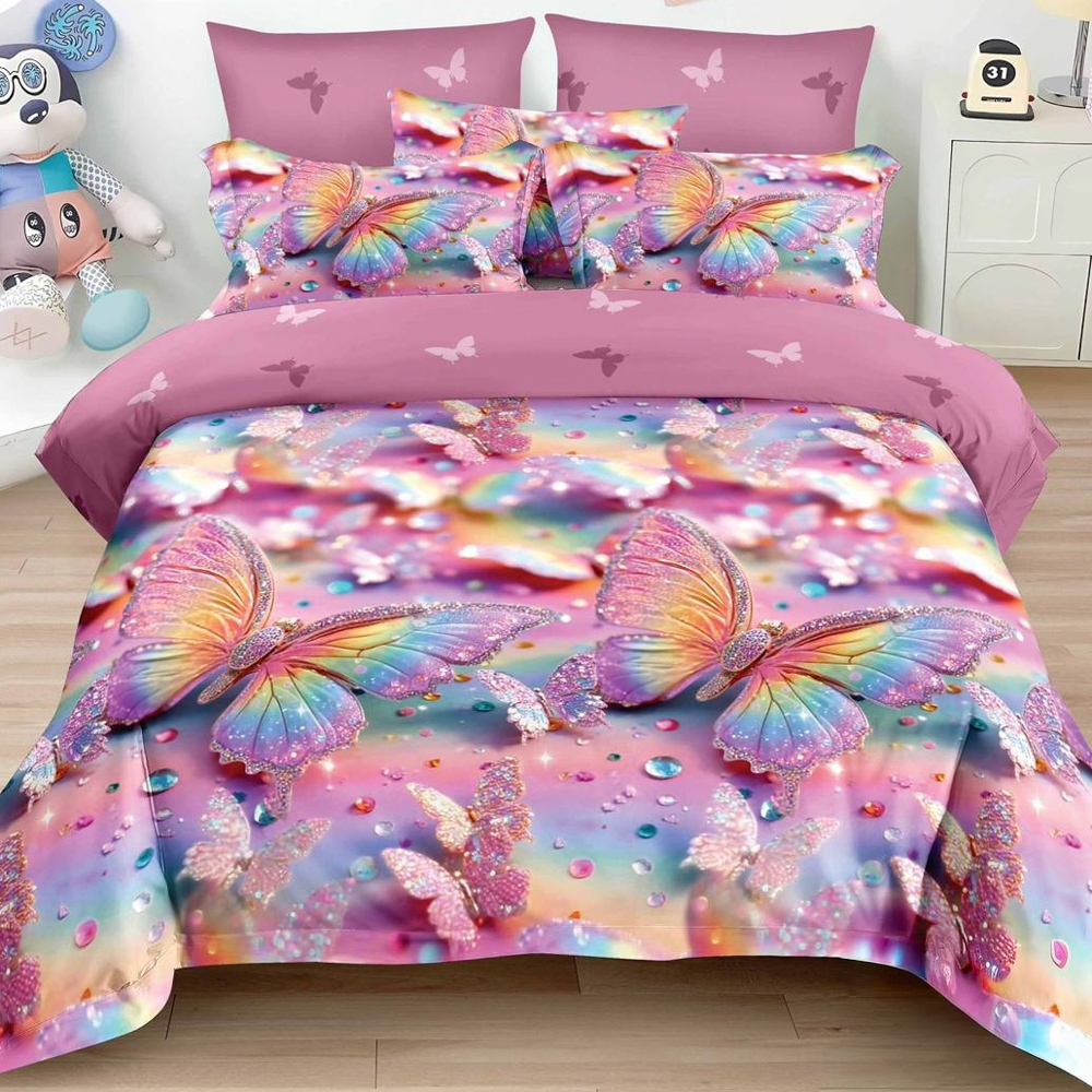 Lenjerie pat dublu, Finet, 6 piese, Roz, fluturi, Johny Home Pucioasa, cod produs: SPR-R60-618