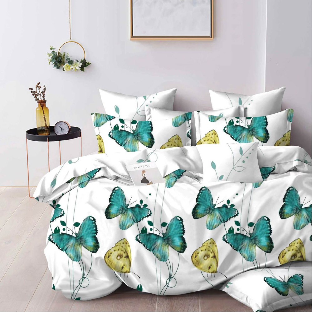 Lenjerie pat dublu, Finet, 6 piese, Verde, Alb, fluturi, Talo, cod produs: SKT-FN-29