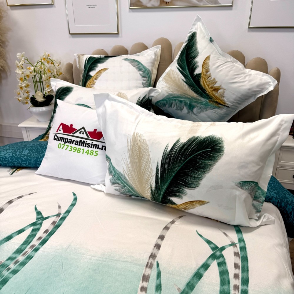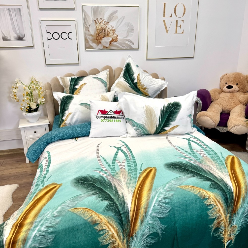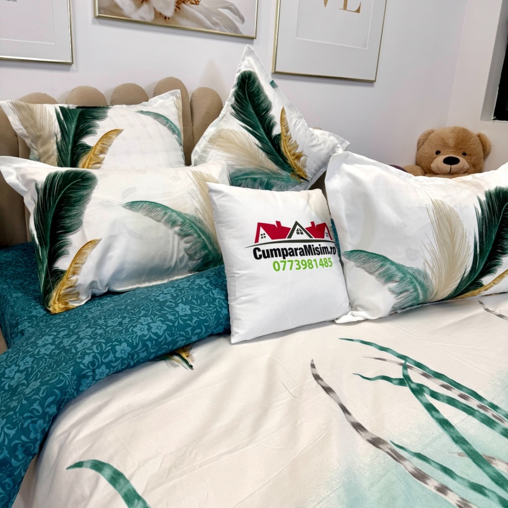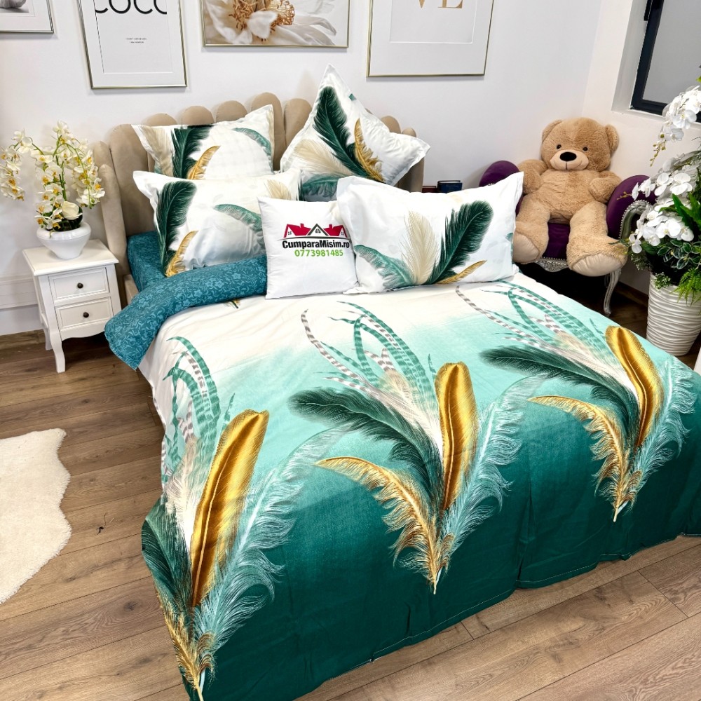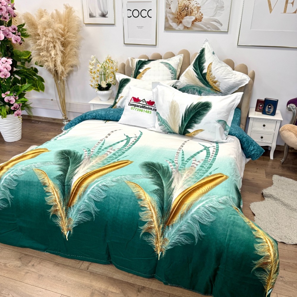 Lenjerie pat dublu, Finet, 6 piese, Verde, pene, Talo, cod produs: SKT-FN-26