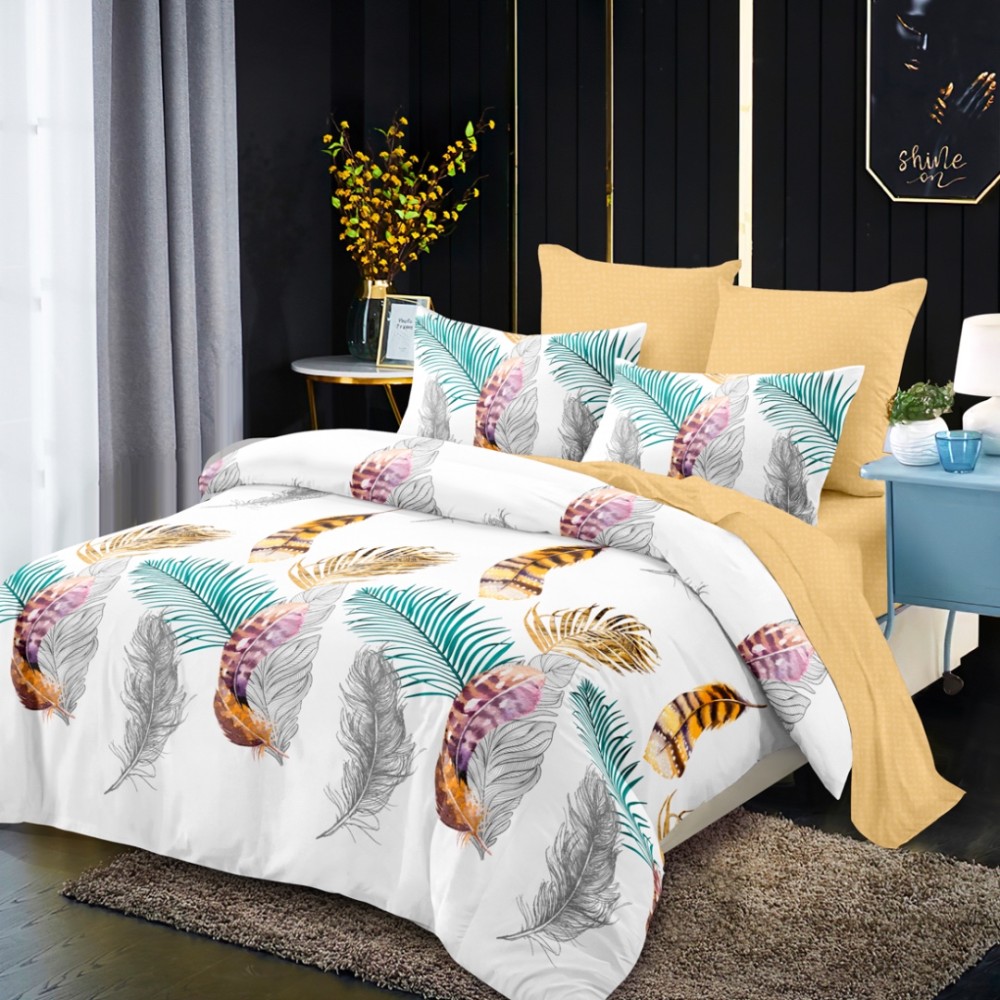 Lenjerie pat dublu, FINET, cu elastic, 6 piese, Alb, Galben, Pene, Super Design Pucioasa, cod produs: SDP-FEB-632