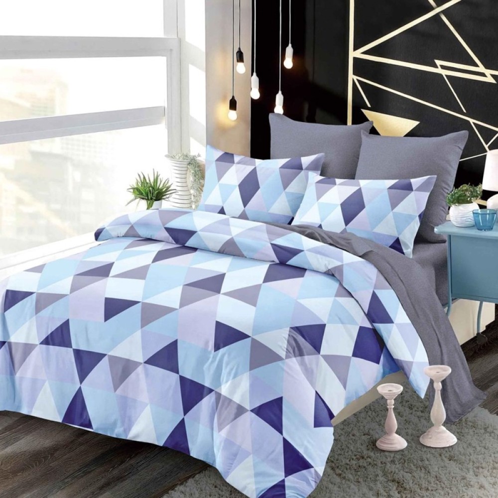Lenjerie pat dublu, FINET, cu elastic, 6 piese, Bleu, Forme Geometrice, Primavara Casa, cod produs: PRM-FE-B6055