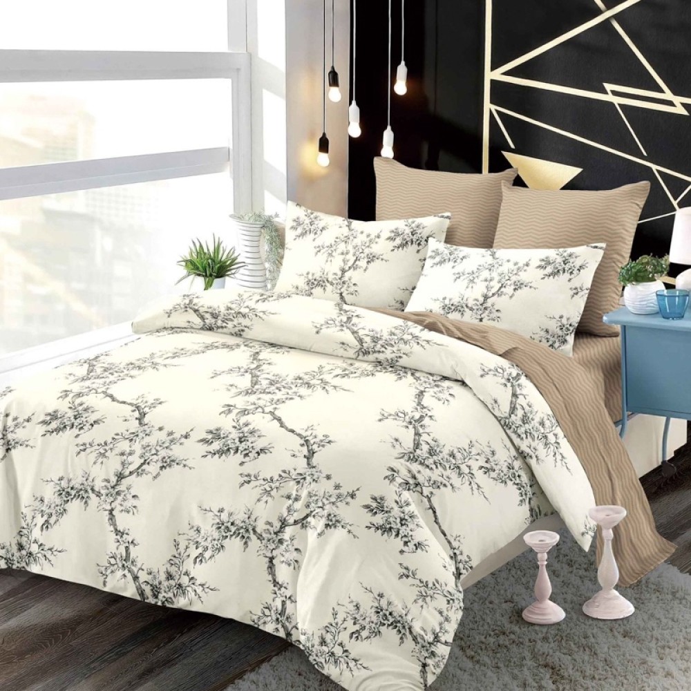 Lenjerie pat dublu, FINET, cu elastic, 6 piese, Crem, Bej, Crengute, Primavara Casa, cod produs: PRM-FE-B6082