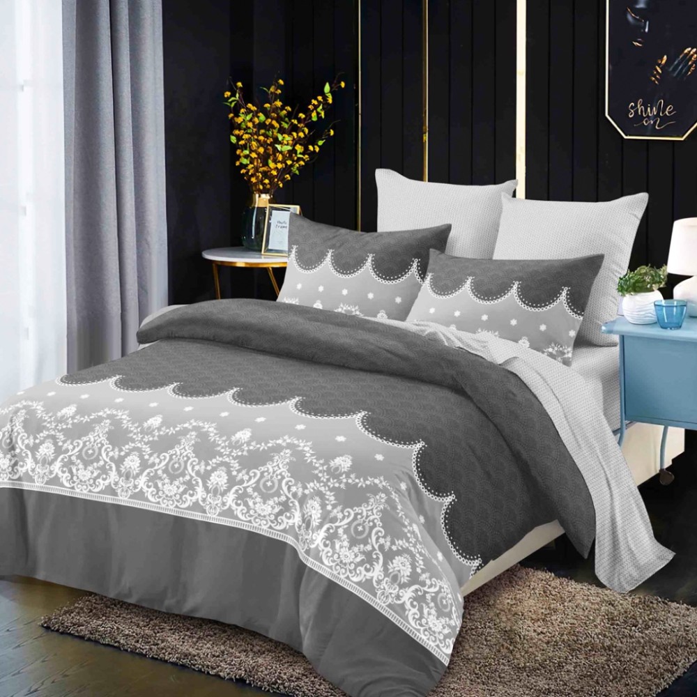 Lenjerie pat dublu, FINET, cu elastic, 6 piese, Gri, Alb, Model Dantelat, Super Design Pucioasa, cod produs: SDP-FEB-615