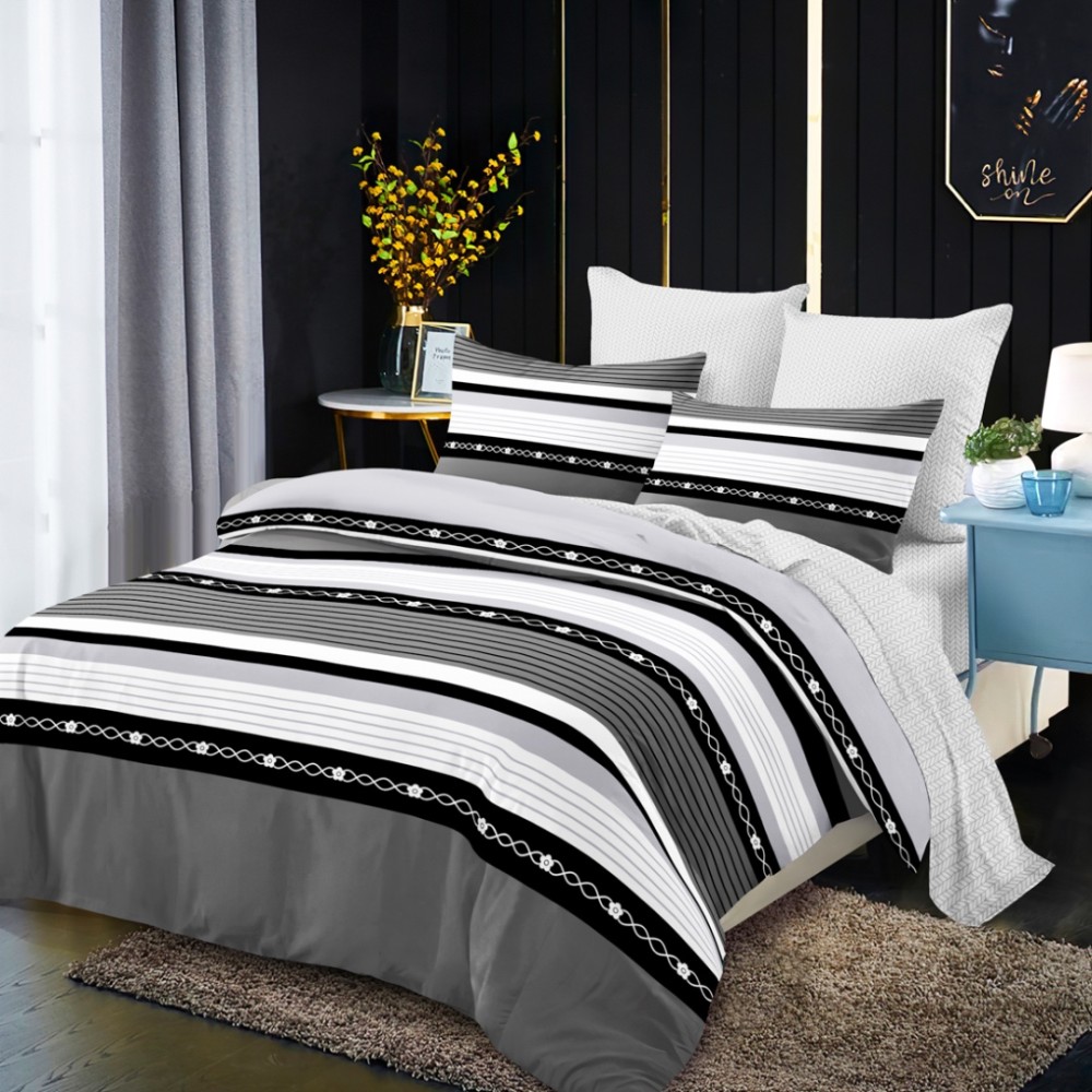 Lenjerie pat dublu, FINET, cu elastic, 6 piese, Gri, Dungi, Super Design Pucioasa, cod produs: SDP-FEB-611