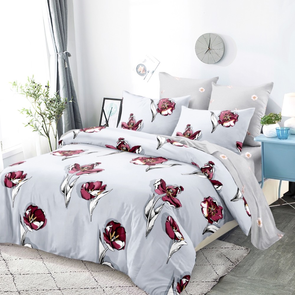 Lenjerie pat dublu, FINET, cu elastic, 6 piese, Gri, Lalele, Super Design Pucioasa, cod produs: SDP-FEB-627