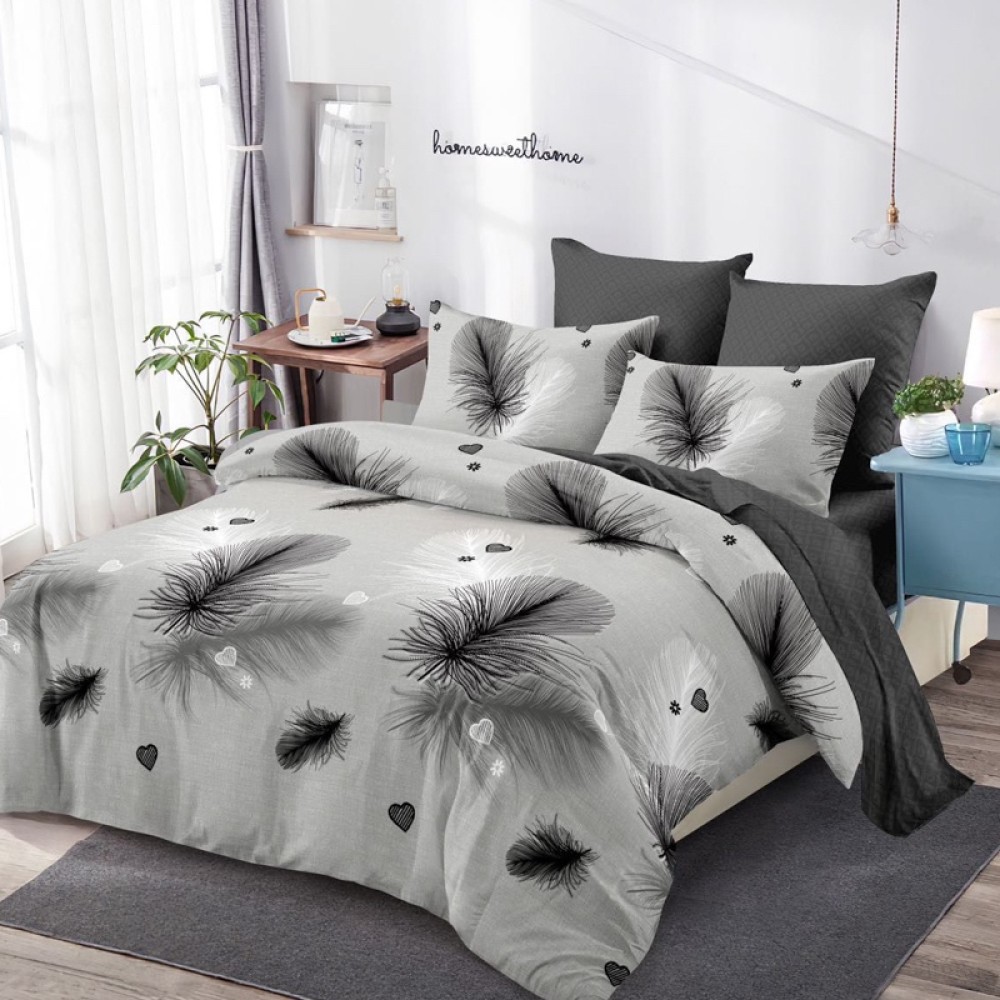 Lenjerie pat dublu, FINET, cu elastic, 6 piese, Gri, Pene, Primavara Casa, cod produs: PRM-FE-B988