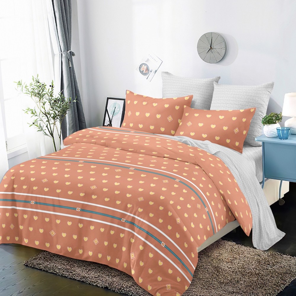 Lenjerie pat dublu, FINET, cu elastic, 6 piese, Somon, Gri, Inimioare, Super Design Pucioasa, cod produs: SDP-FEB-568