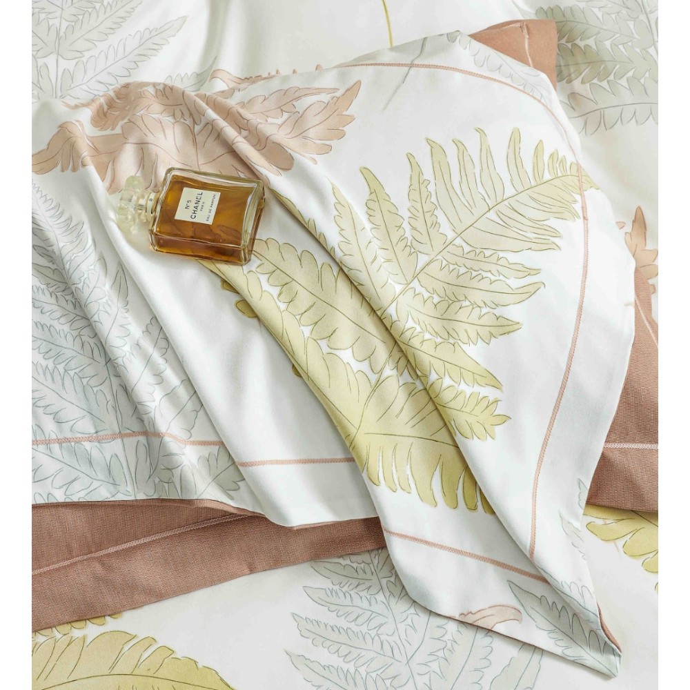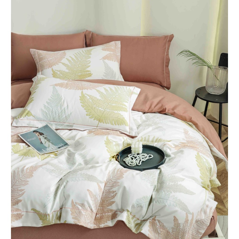 Lenjerie pat dublu, FINET DeLuxe, 6 piese, cu ELASTIC, Jojo Home, Cutie Eleganta, Alb, Bej, Ferigi, cod produs: JOJ-LXC-08