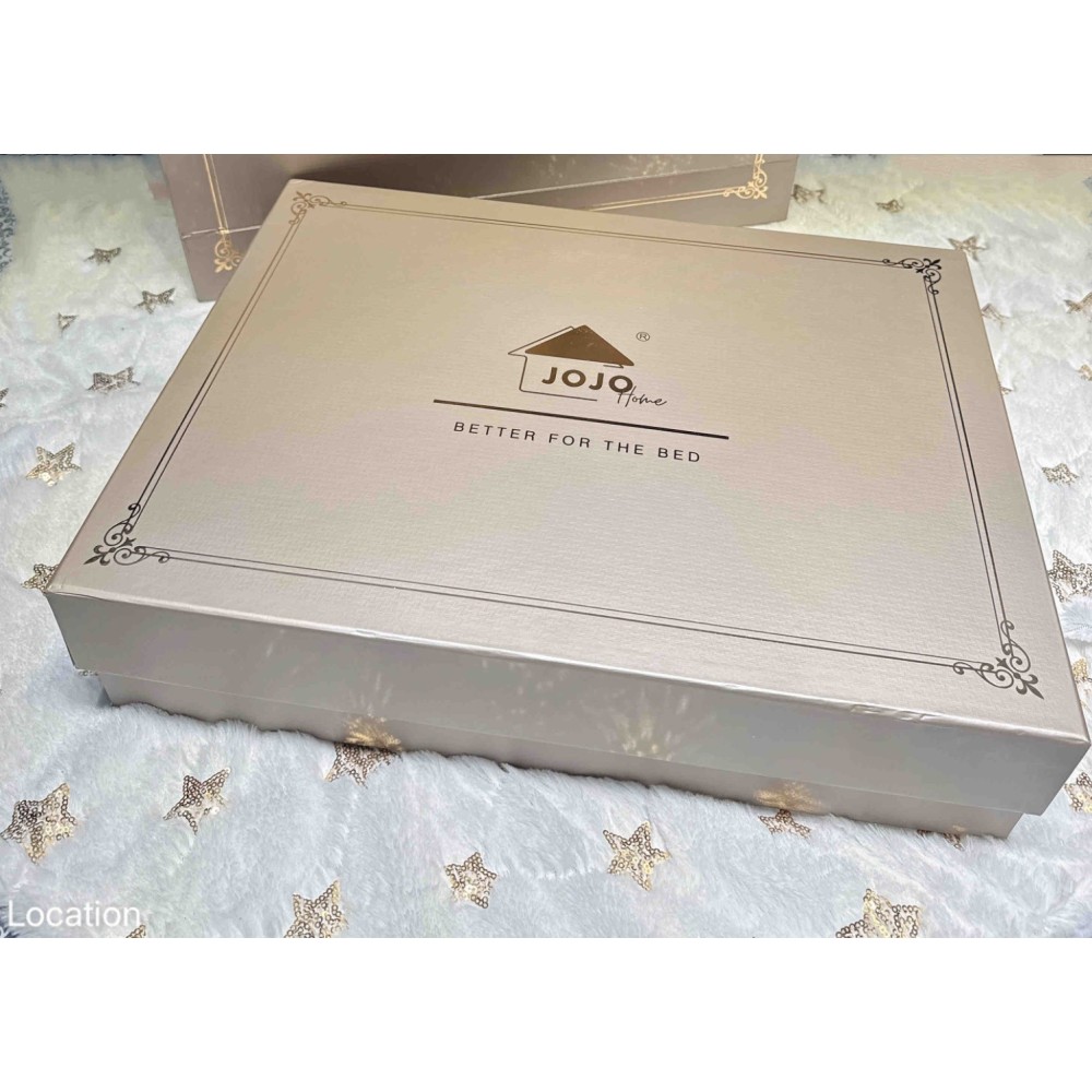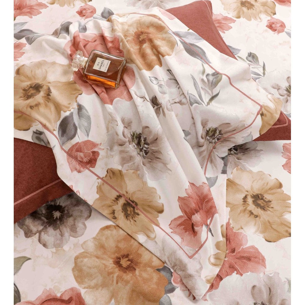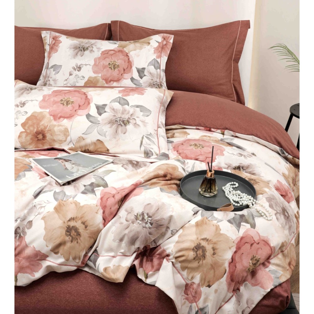 Lenjerie pat dublu, FINET DeLuxe, 6 piese, cu ELASTIC, Jojo Home, Cutie Eleganta, Alb, Maroniu, Flori, cod produs: JOJ-LXC-28