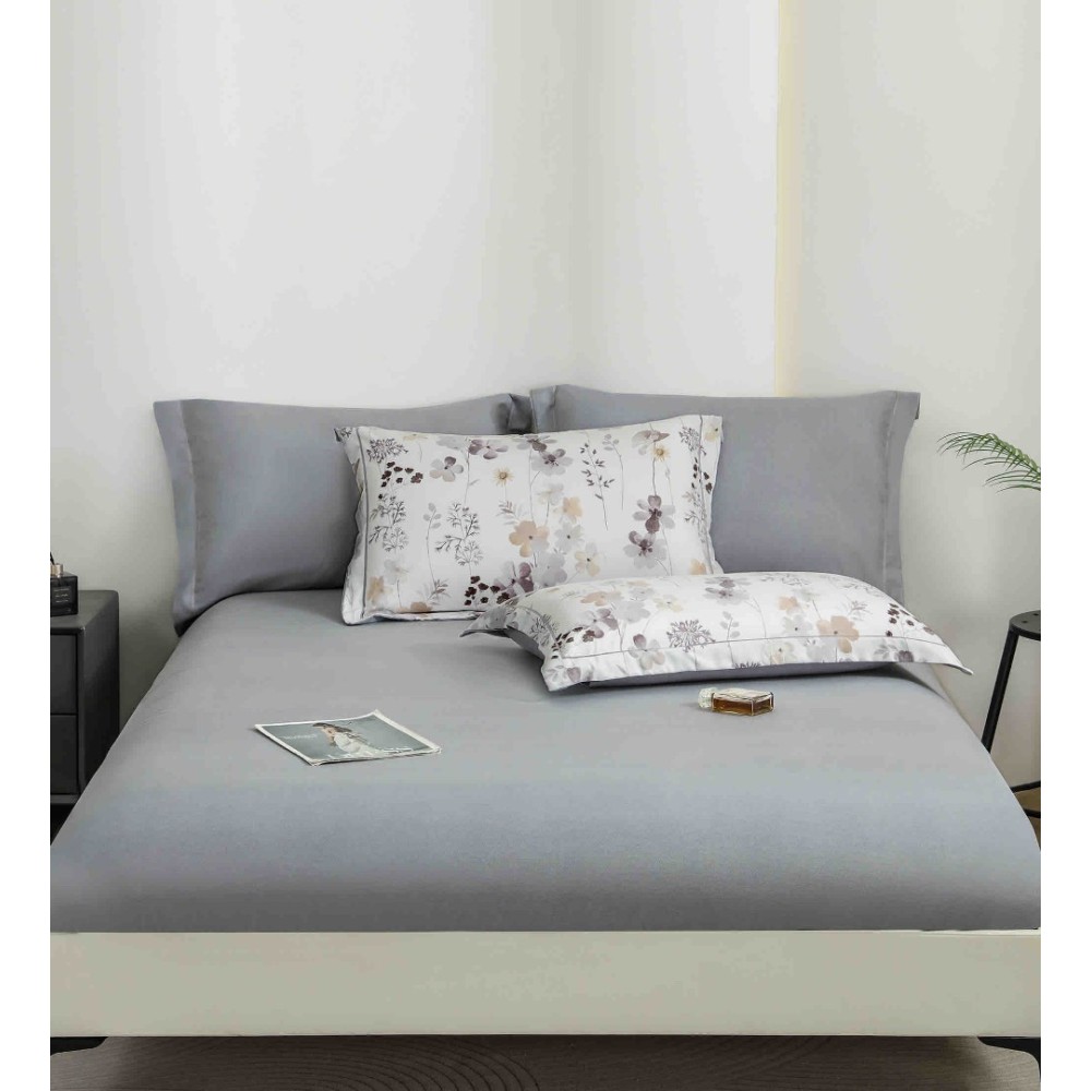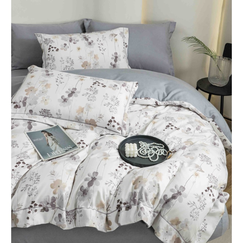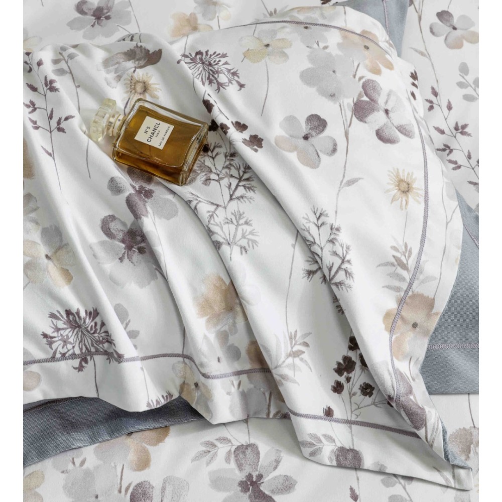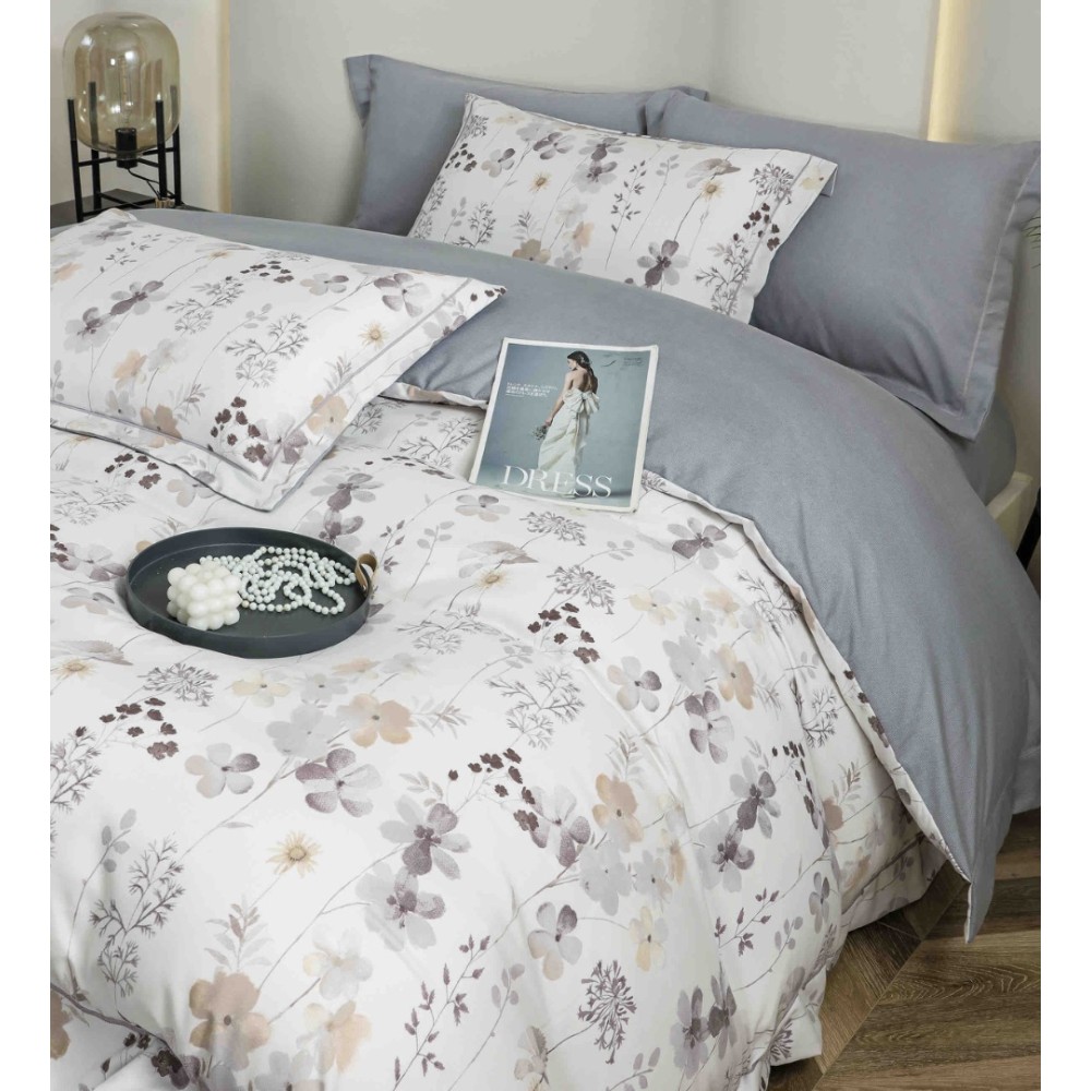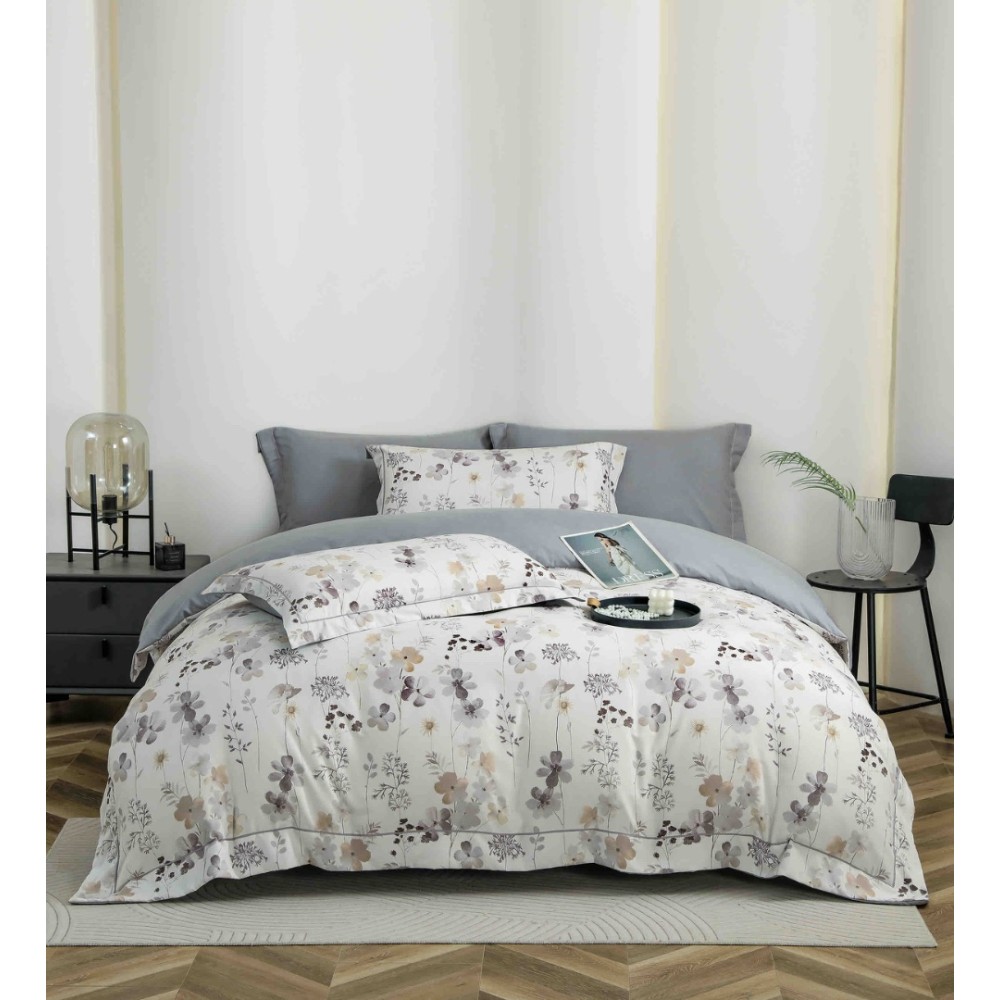 Lenjerie pat dublu, FINET DeLuxe, 6 piese, cu ELASTIC, Jojo Home, Cutie Eleganta, Gri, Flori, cod produs: JOJ-LXC-12