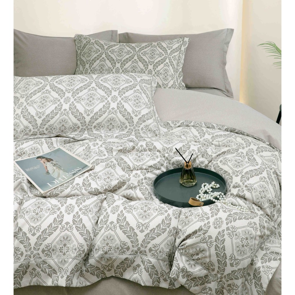 De asemenea, mentionam ca fetele de perna din seturile noastre pot include orice parte a designului lenjeriei, deoarece materialul este taiat secvential in timpul procesului de croiala. Aceasta poate duce la variatii de model intre seturi.