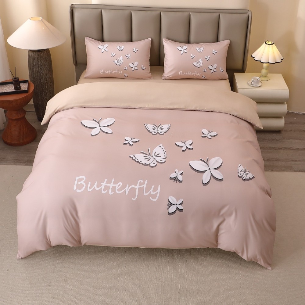 Lenjerie pat dublu, FINET, Imprimeu Digital 5D - Identic cu poza, Cu ELASTIC, 4 piese, Bej, Fluturi , cod produs: BCC-5DF-72