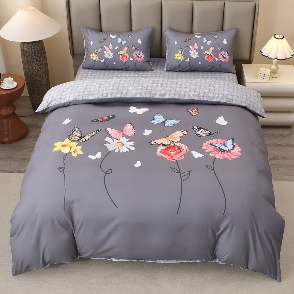 Lenjerie pat dublu, FINET, Imprimeu Digital 5D - Identic cu poza, Cu ELASTIC, 4 piese, Gri, Fluturi , cod produs: BCC-5DF-64