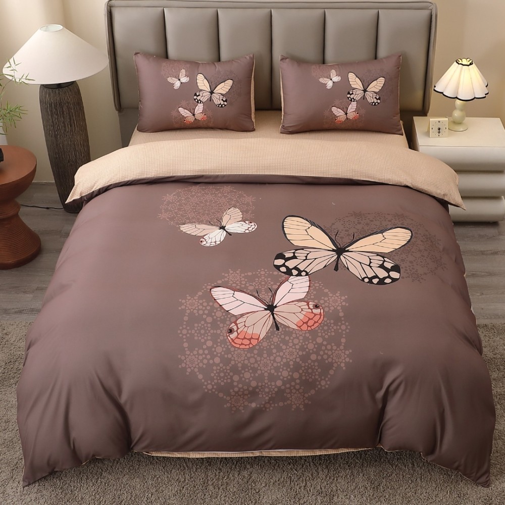Lenjerie pat dublu, FINET, Imprimeu Digital 5D - Identic cu poza, Cu ELASTIC, 4 piese, Maro, Fluturi , cod produs: BCC-5DF-43