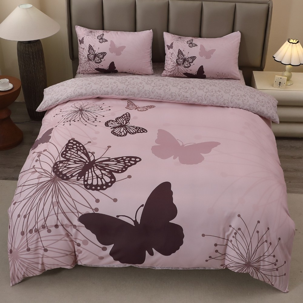 Lenjerie pat dublu, FINET, Imprimeu Digital 5D - Identic cu poza, Cu ELASTIC, 4 piese, Roz, Fluturi , cod produs: BCC-5DF-42