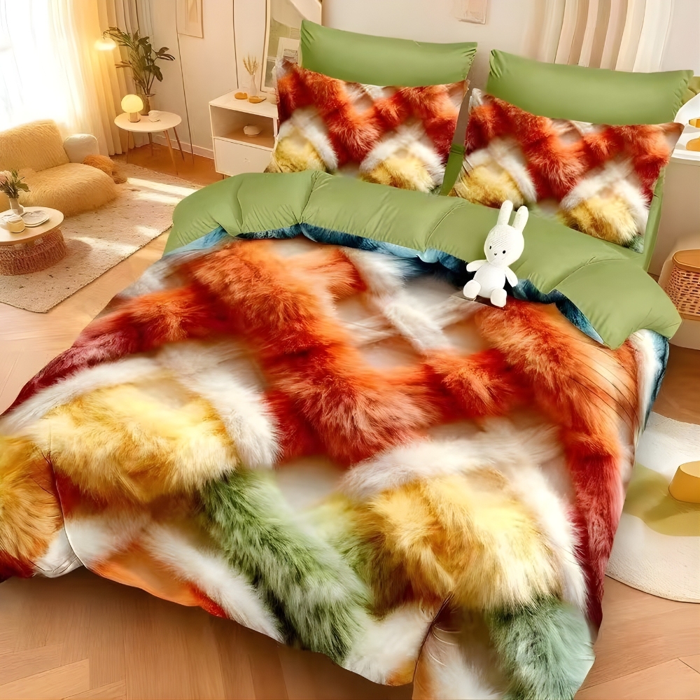 Lenjerie pat dublu, FINET, Imprimeu Digital 5D - Identic cu poza, Cu ELASTIC, 6 piese, Multicolor, pufuri, Talo, cod produs: SKT-5D-05