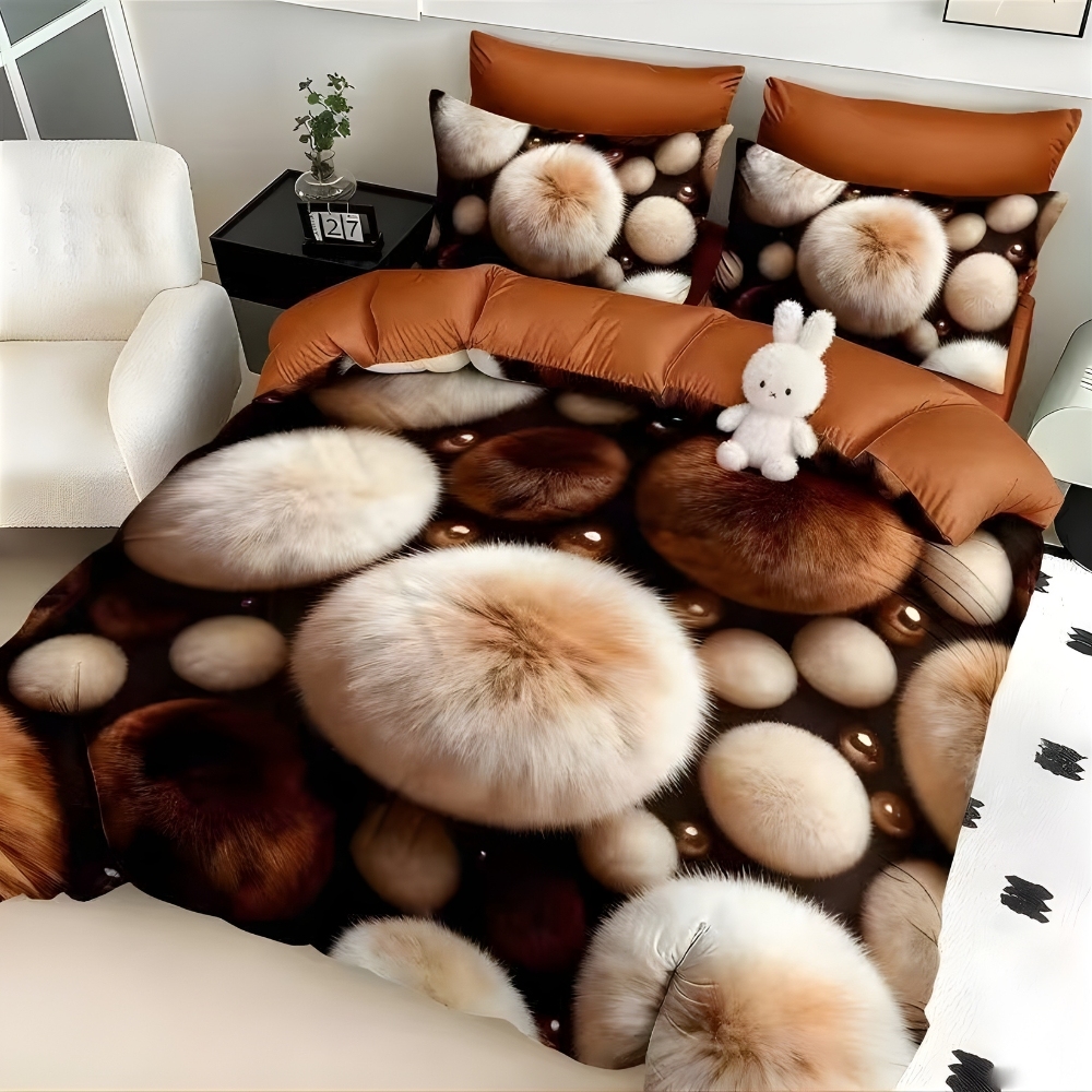 Lenjerie pat dublu, FINET, Imprimeu Digital 5D - Identic cu poza, Cu ELASTIC, 6 piese, Negru, Maro, buline pufoase, Talo, cod produs: SKT-5D-07