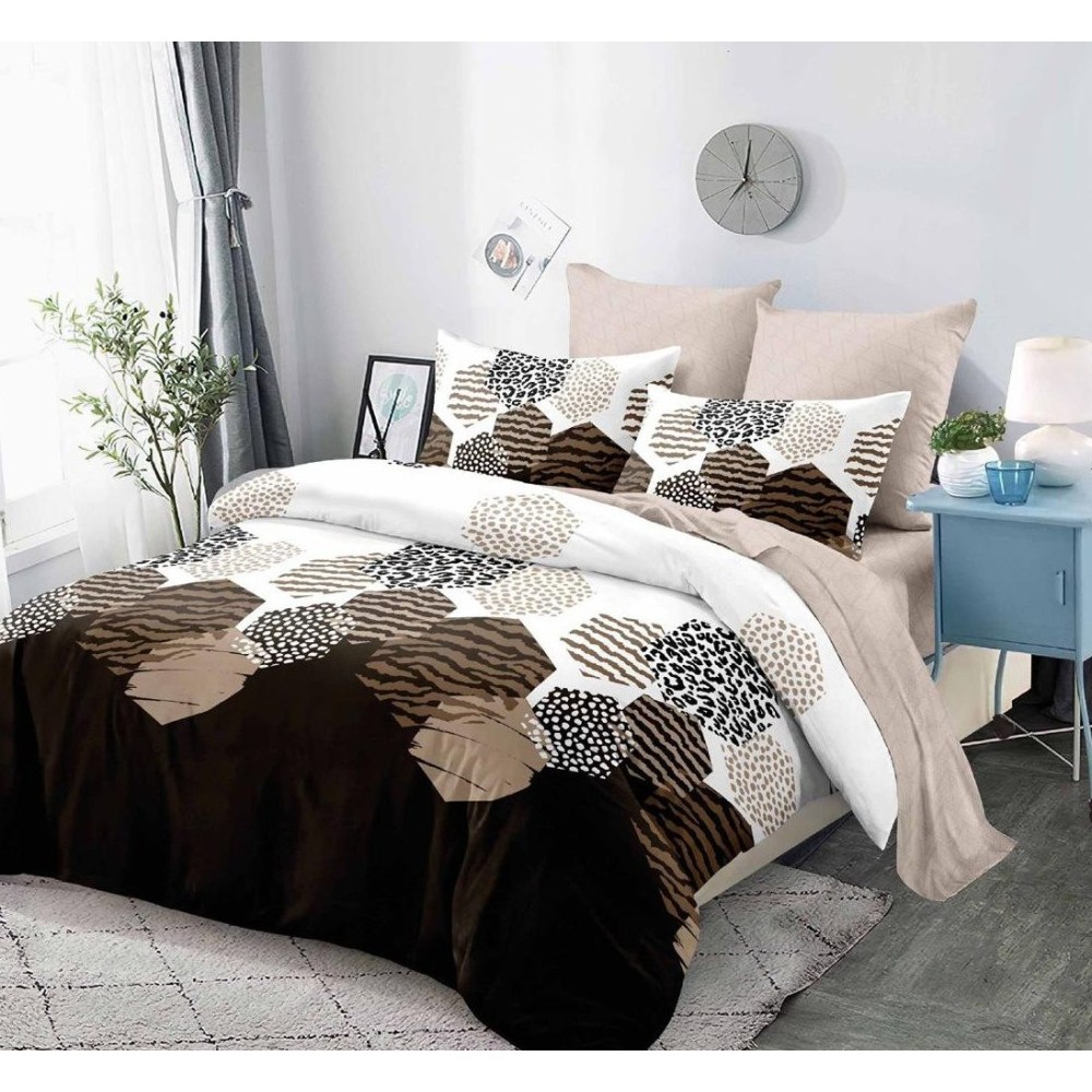 Lenjerie pat dublu, FINET, 6 piese, Bej, Maro, Forme Geometrice, Pucioasa Fashion Casa, cod produs: TRP-FN-08