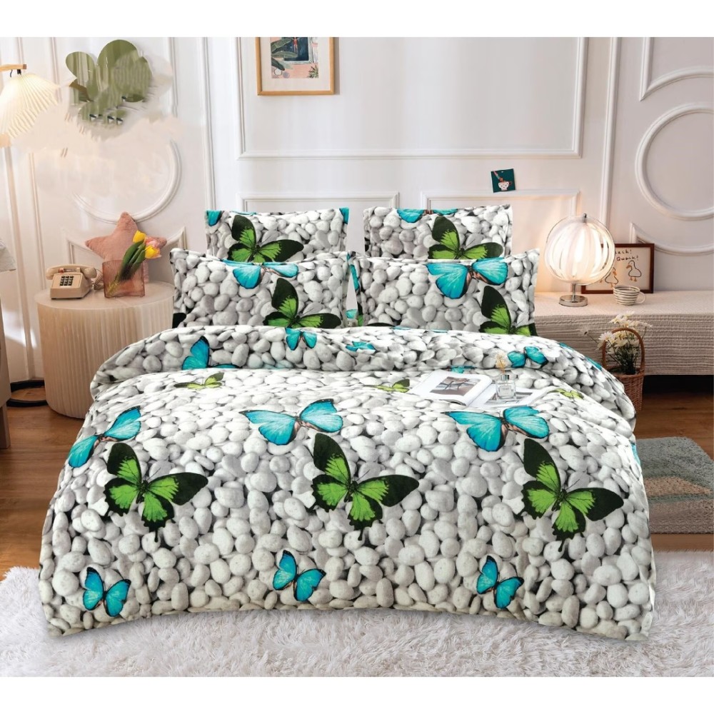 Lenjerie pat dublu, FINET, 6 piese, Gri, Fluturi pe Pietre, Pucioasa Fashion Casa, cod produs: TRP-FN-23