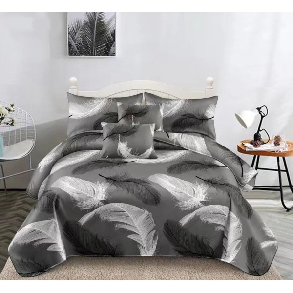 Lenjerie pat dublu, FINET, 6 piese, Gri, Pene, Pucioasa Fashion Casa, cod produs: TRP-FN-49