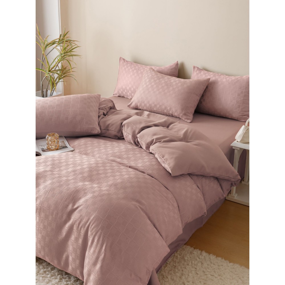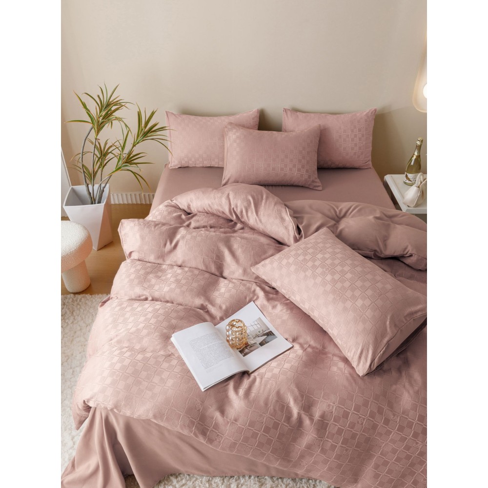Lenjerie pat dublu, JACQUARD FINETAT, 6 piese, Jojo Home, Roz Pudra, cod produs: JOJ-JF-01