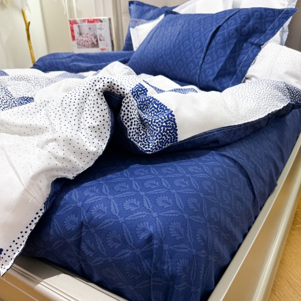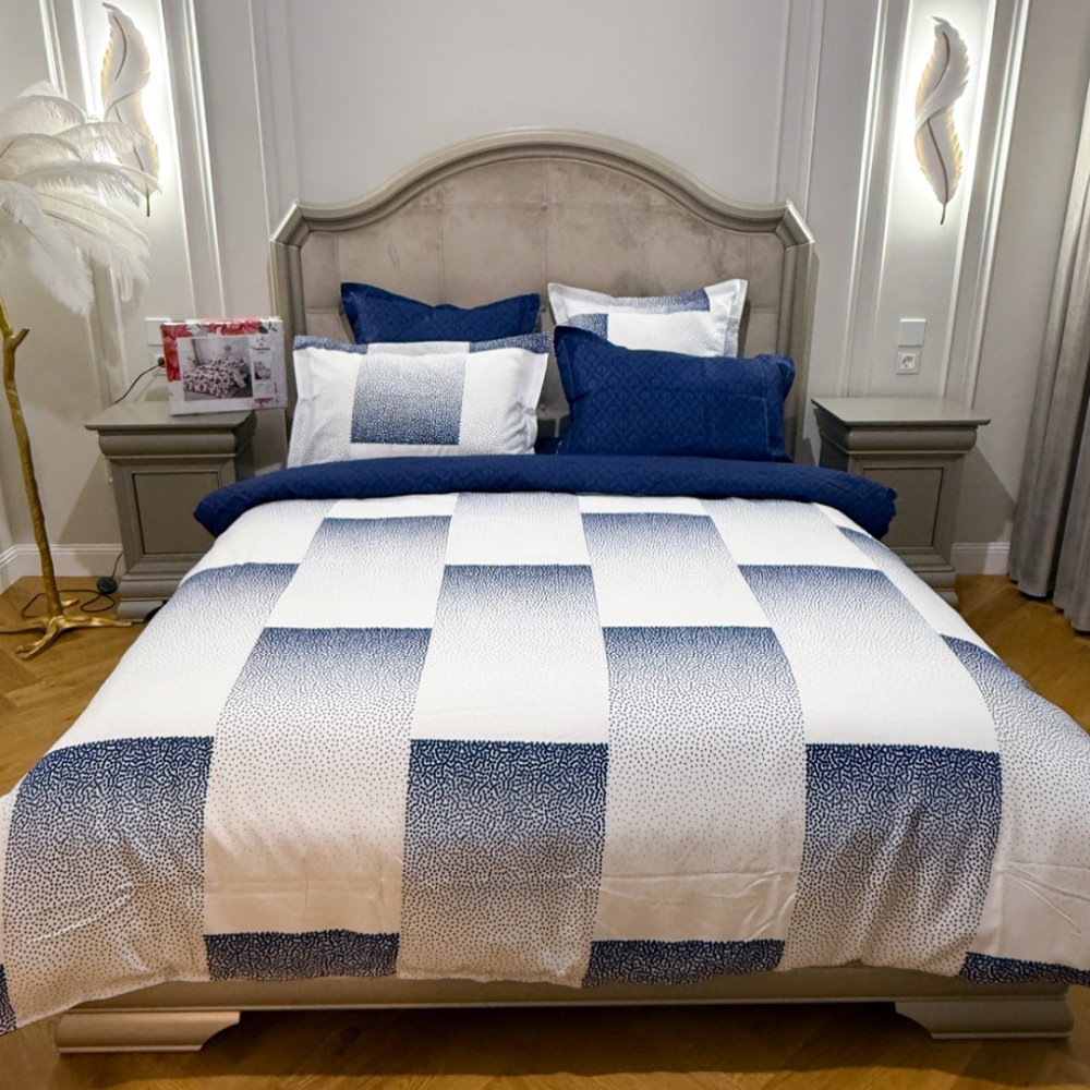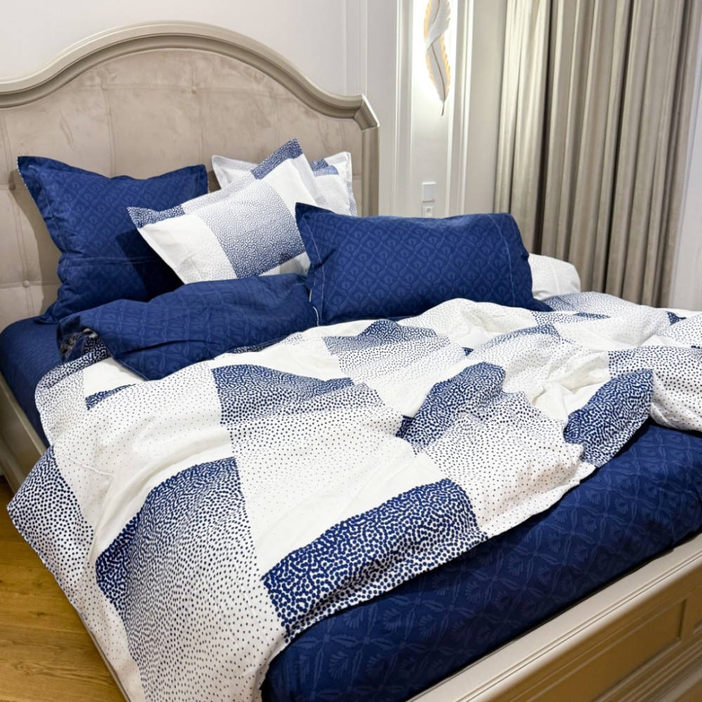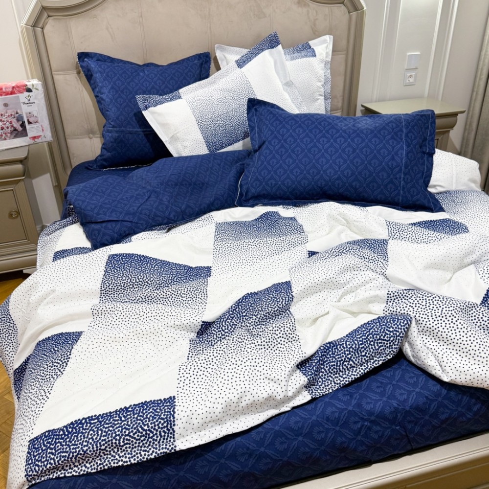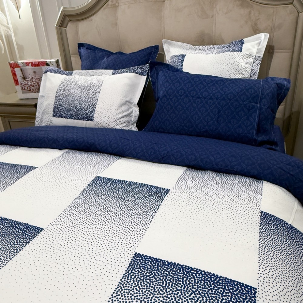 Lenjerie Pat Dublu, FINET, 6 piese, Alb, Bleumarin, Forme Geometrice, Primavara Casa, cod produs: PRM-FN-A691