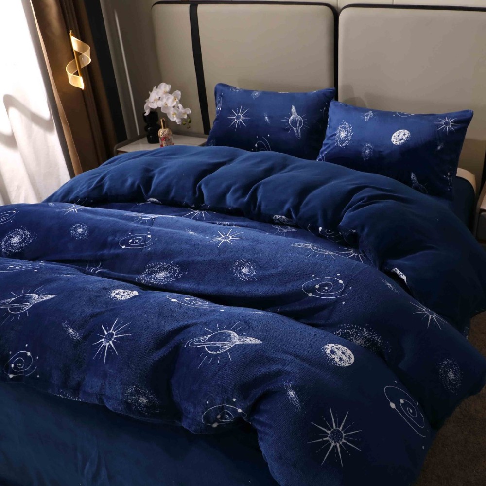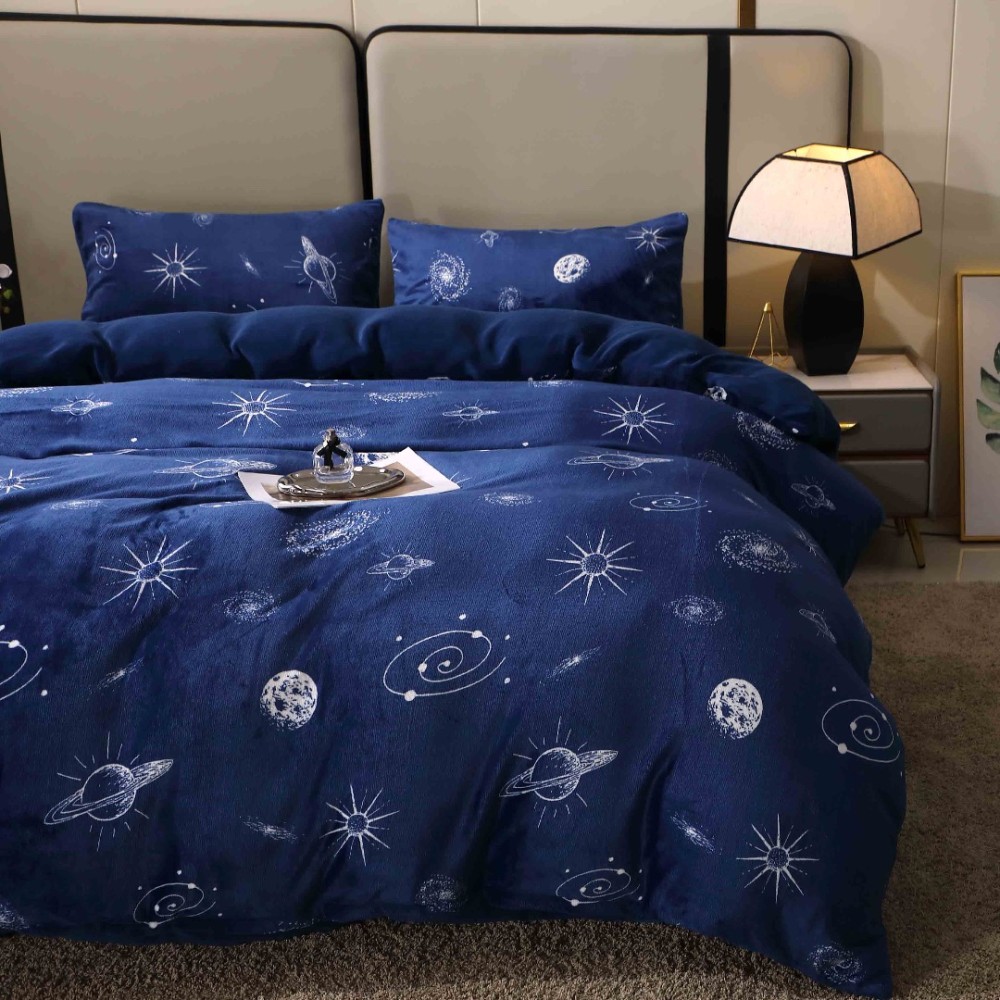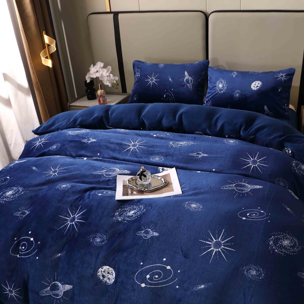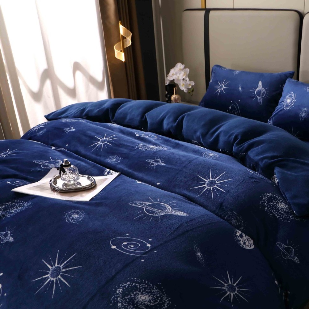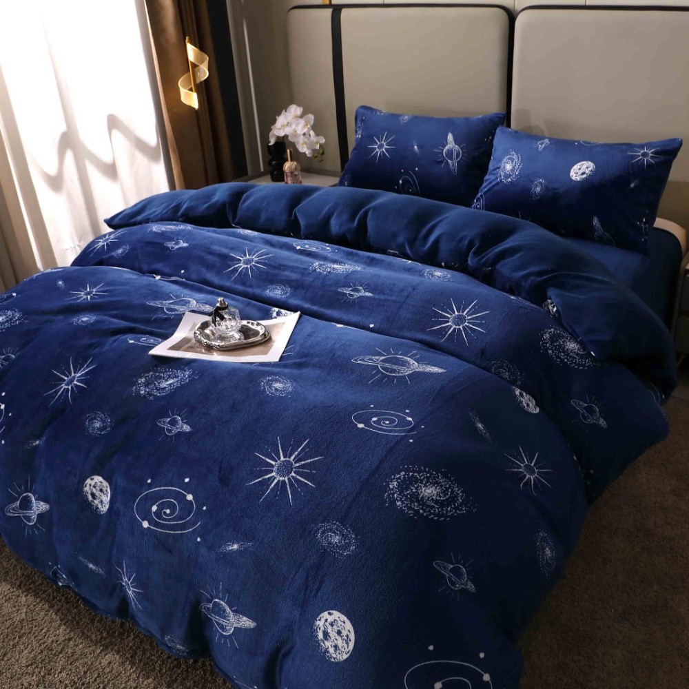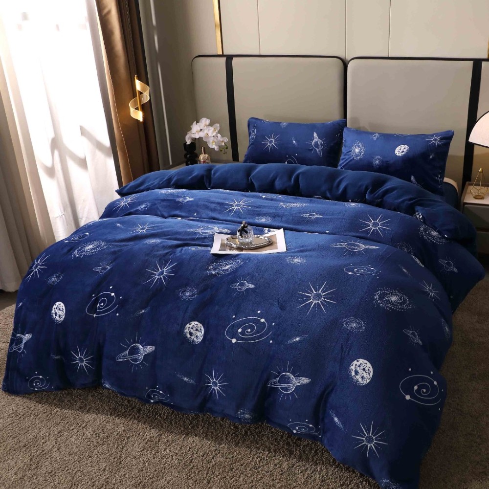 Lenjerie pat dublu, Super Pufoasa COCOLINO, 4 piese, Albastru, Alb, Galaxie, Casa Creative Elegance Pucioasa, cod produs: BCC-LC408