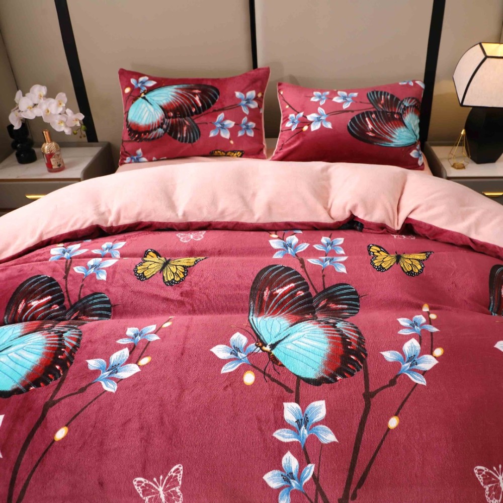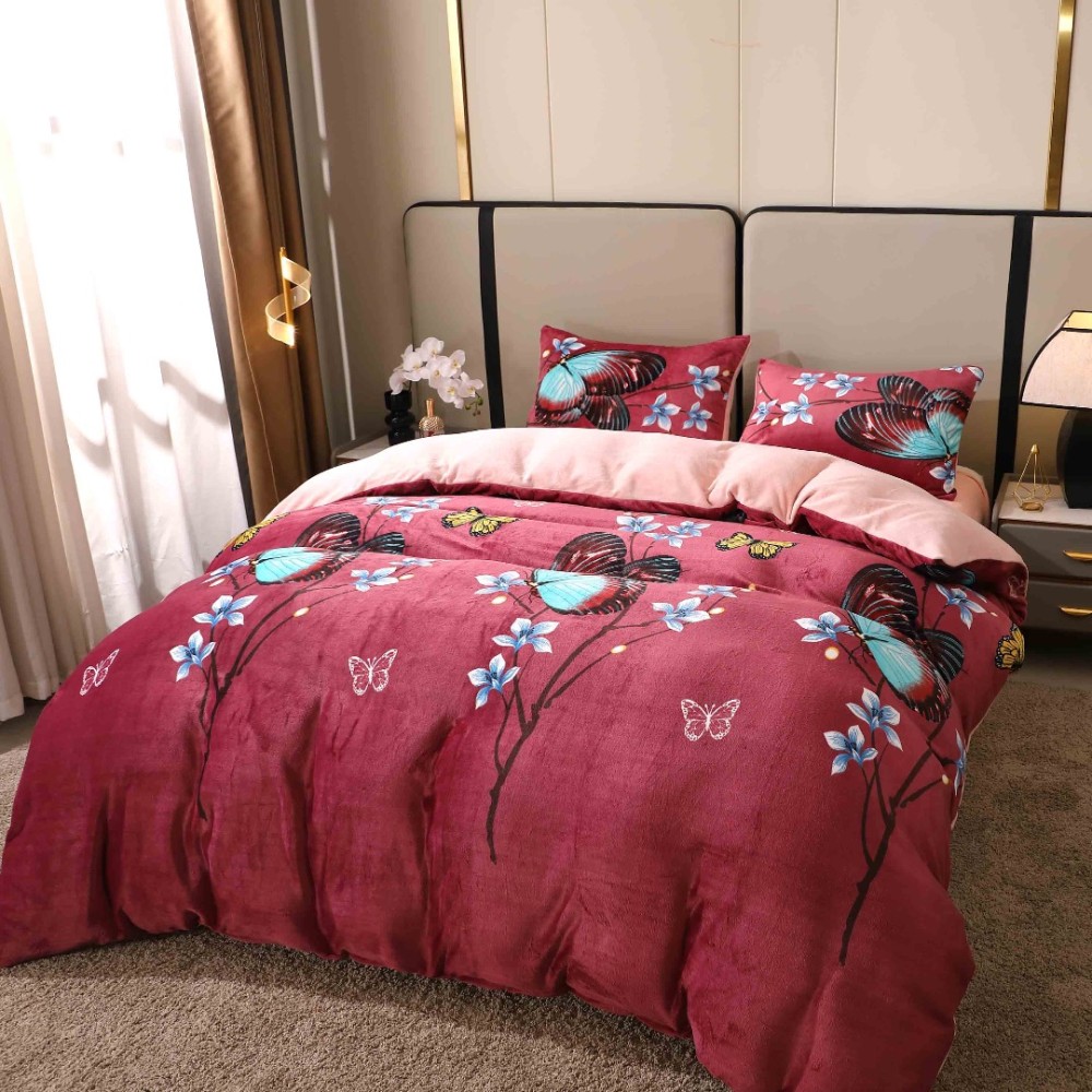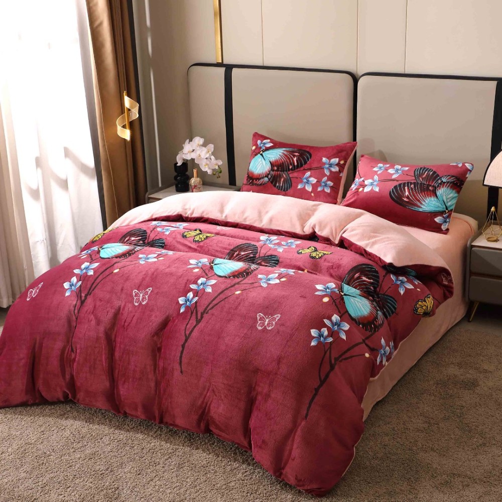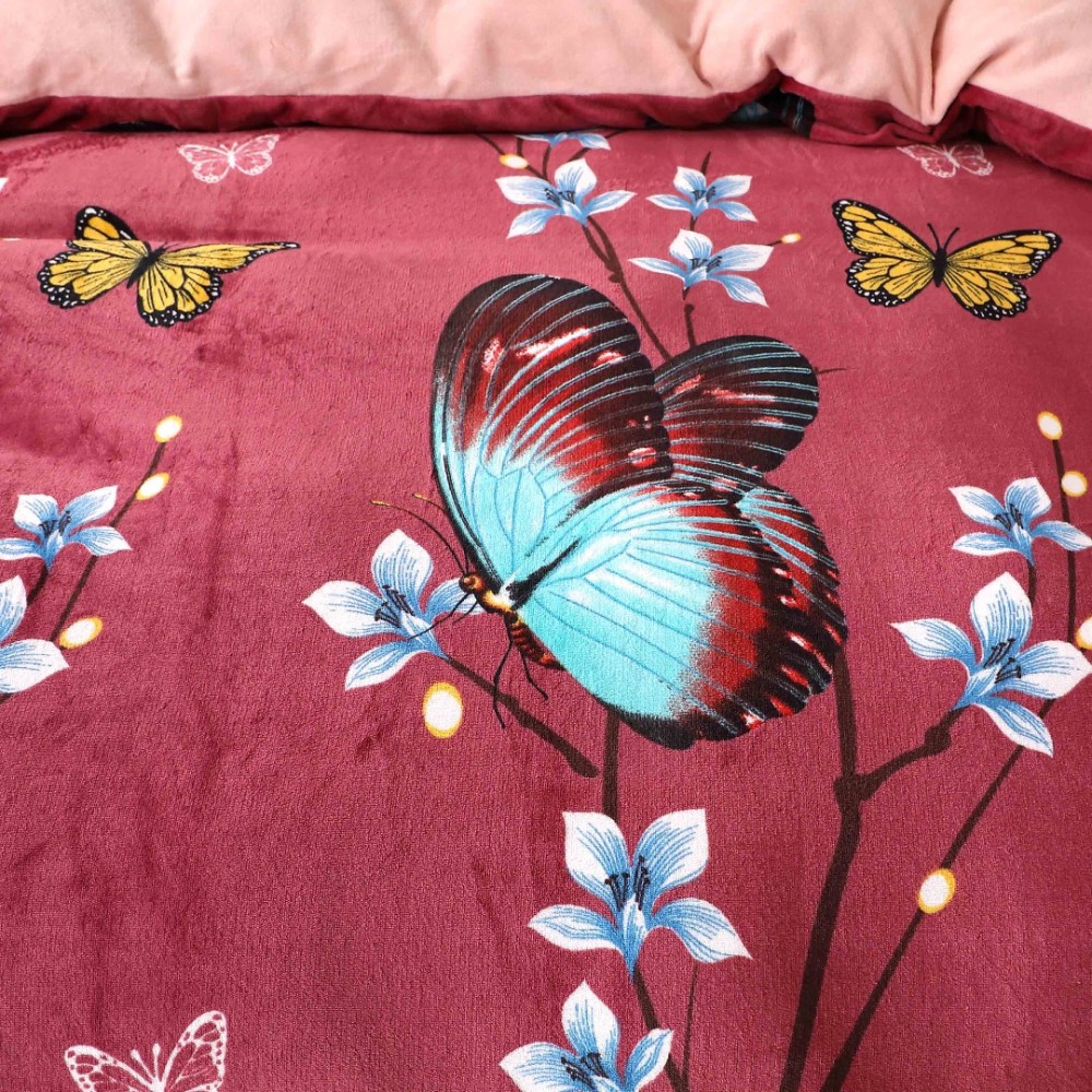 Lenjerie pat dublu, Super Pufoasa COCOLINO, 4 piese, Grena, Fluturi, Casa Creative Elegance Pucioasa, cod produs: BCC-LC409