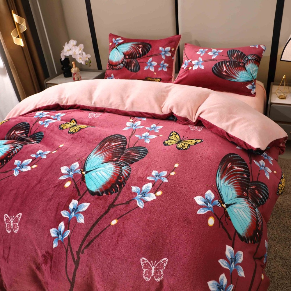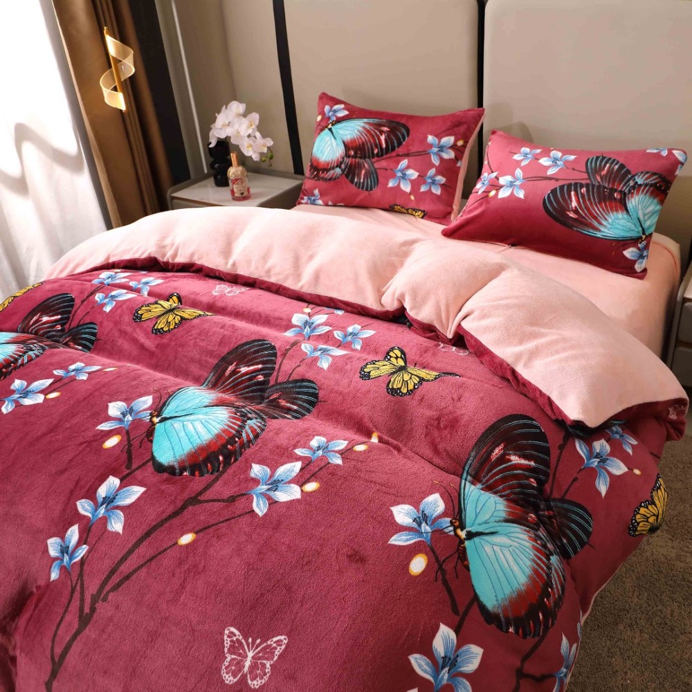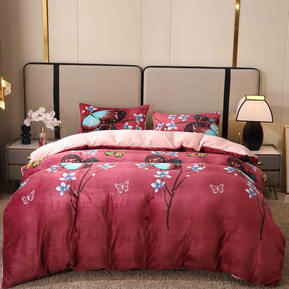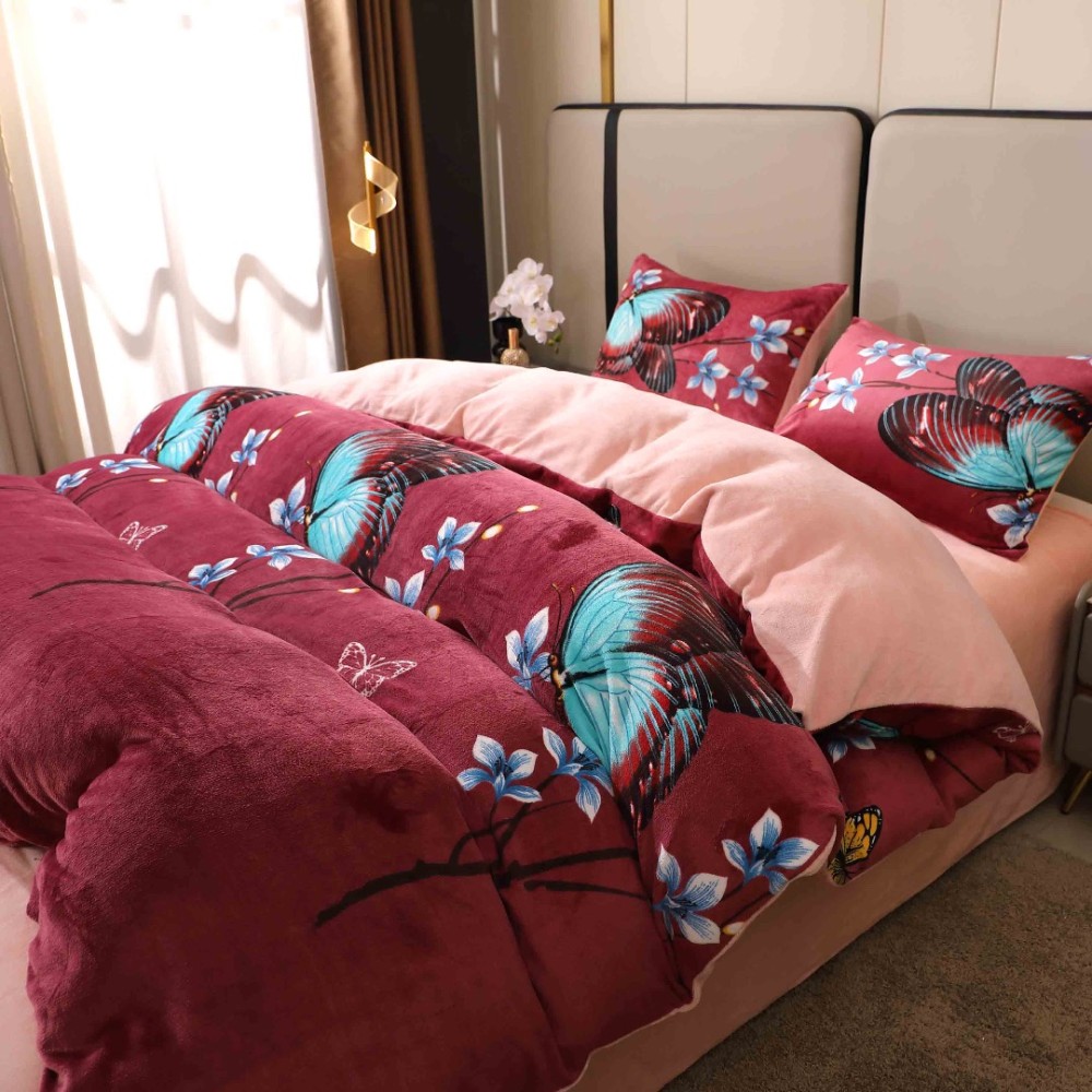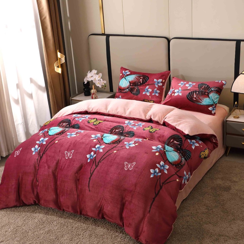 Lenjerie pat dublu, Super Pufoasa COCOLINO, 4 piese, Grena, Fluturi, Casa Creative Elegance Pucioasa, cod produs: BCC-LC409