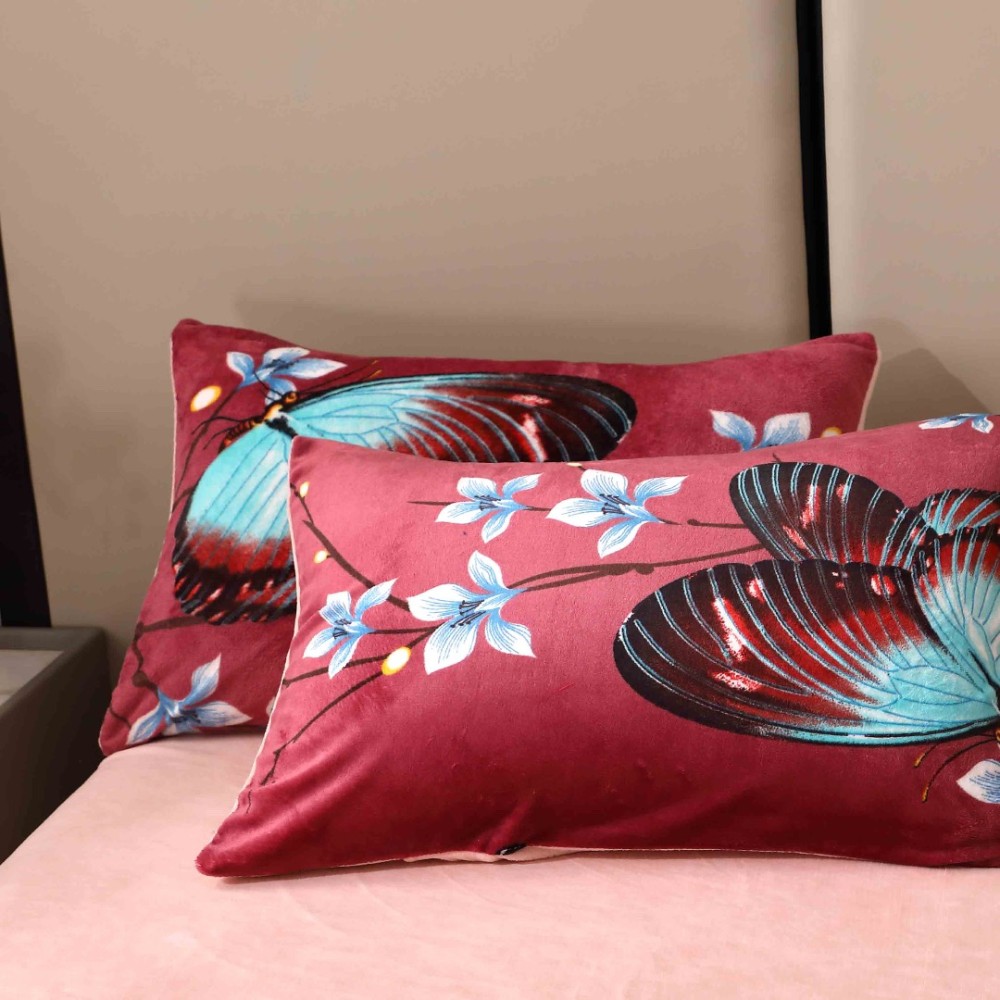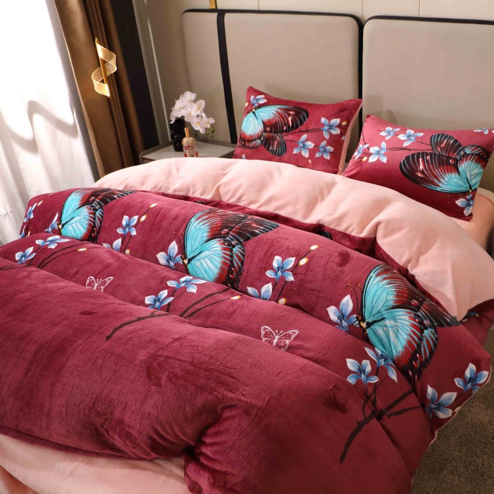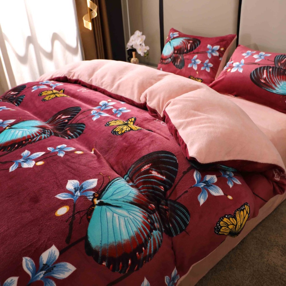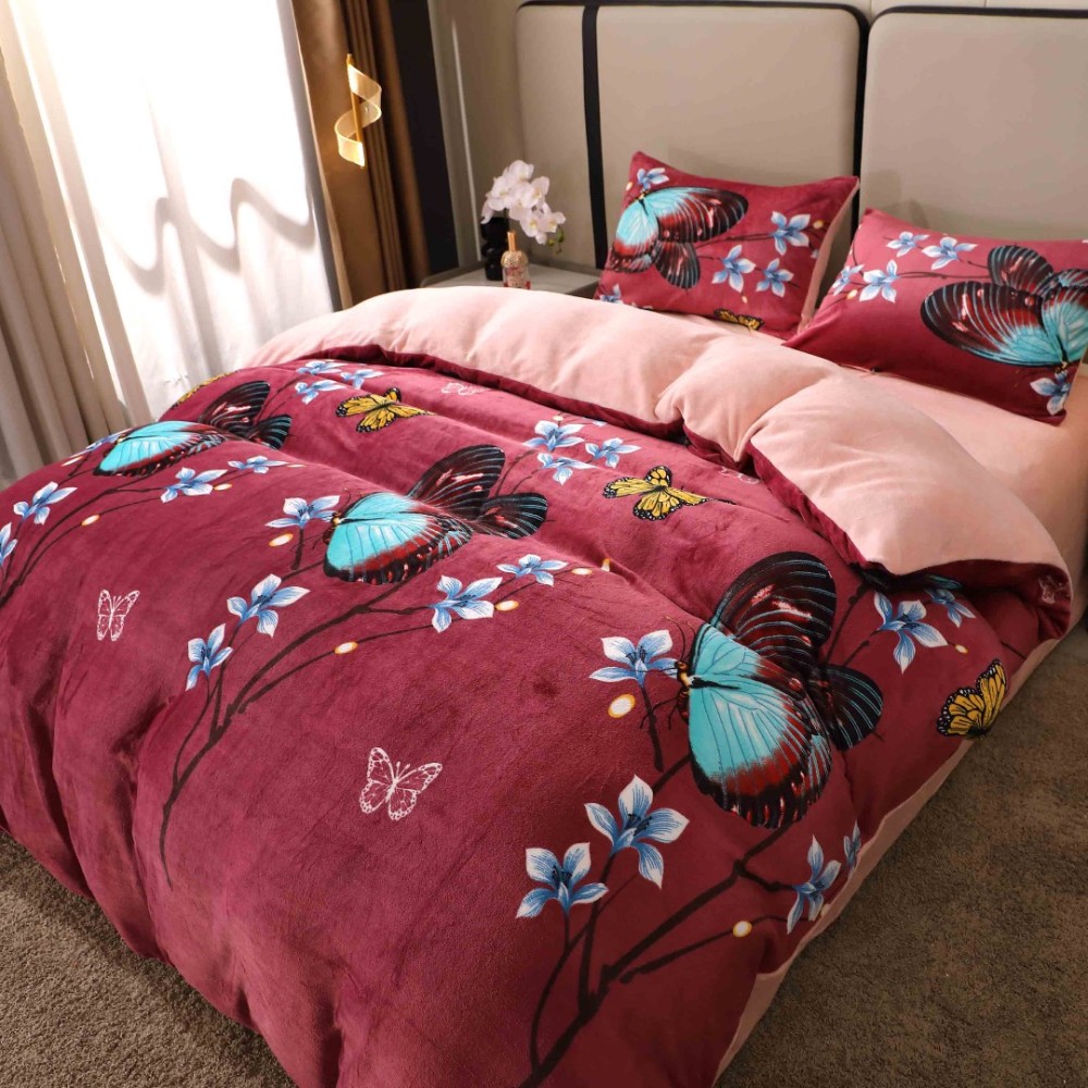 Lenjerie pat dublu, Super Pufoasa COCOLINO, 4 piese, Grena, Fluturi, Casa Creative Elegance Pucioasa, cod produs: BCC-LC409