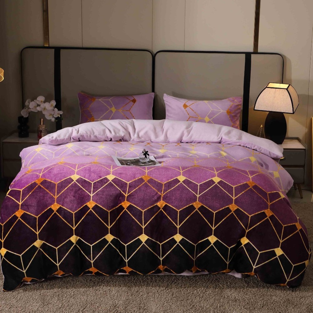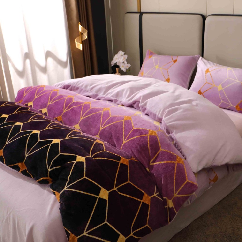 Lenjerie pat dublu, Super Pufoasa COCOLINO, 4 piese, Mov, Forme Geometrice, Casa Creative Elegance Pucioasa, cod produs: BCC-LC413