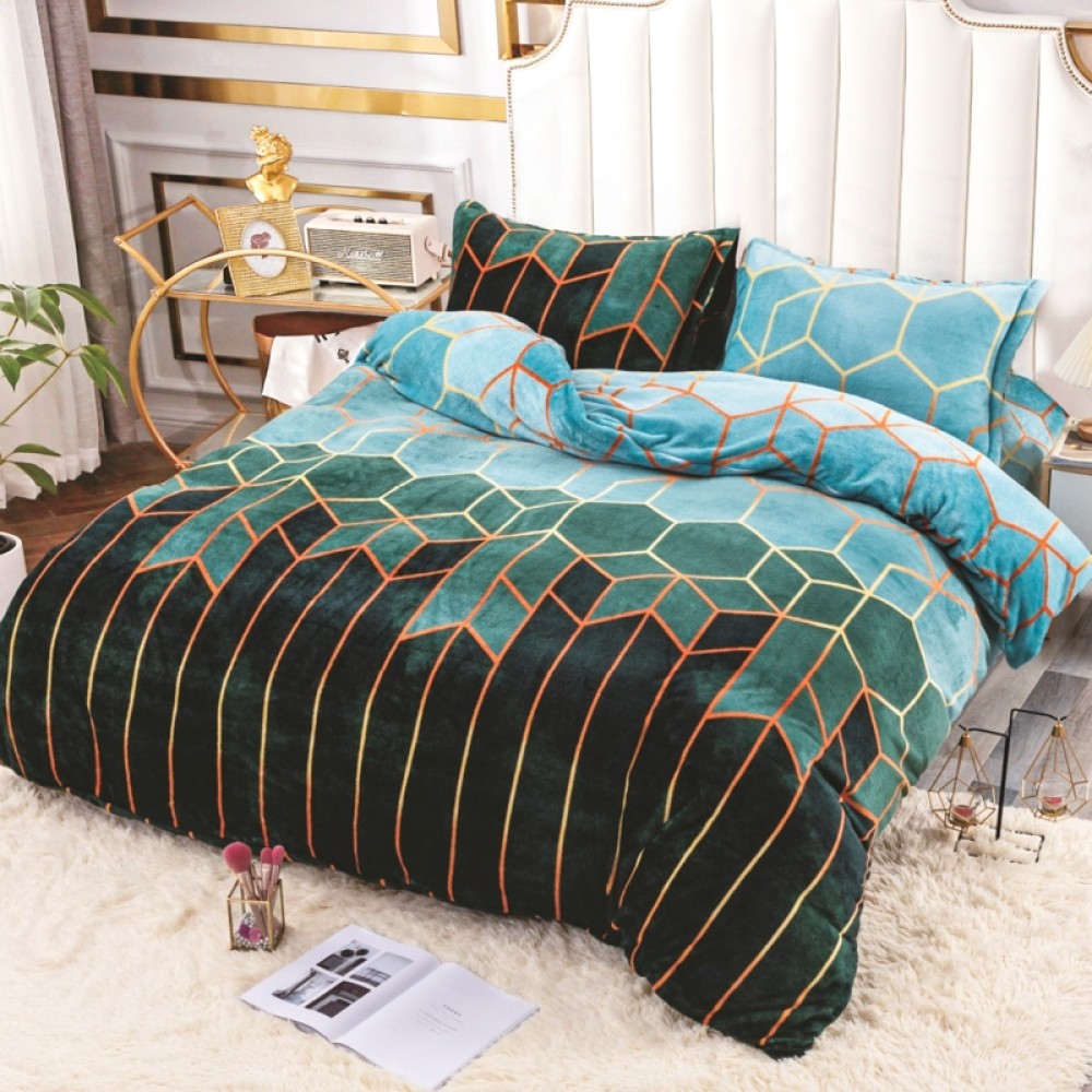 Lenjerie pat dublu, Super Pufoasa COCOLINO, 4 piese, Verde, Forme Geometrice, Pucioasa Fashion Casa, cod produs: SKT-CN06