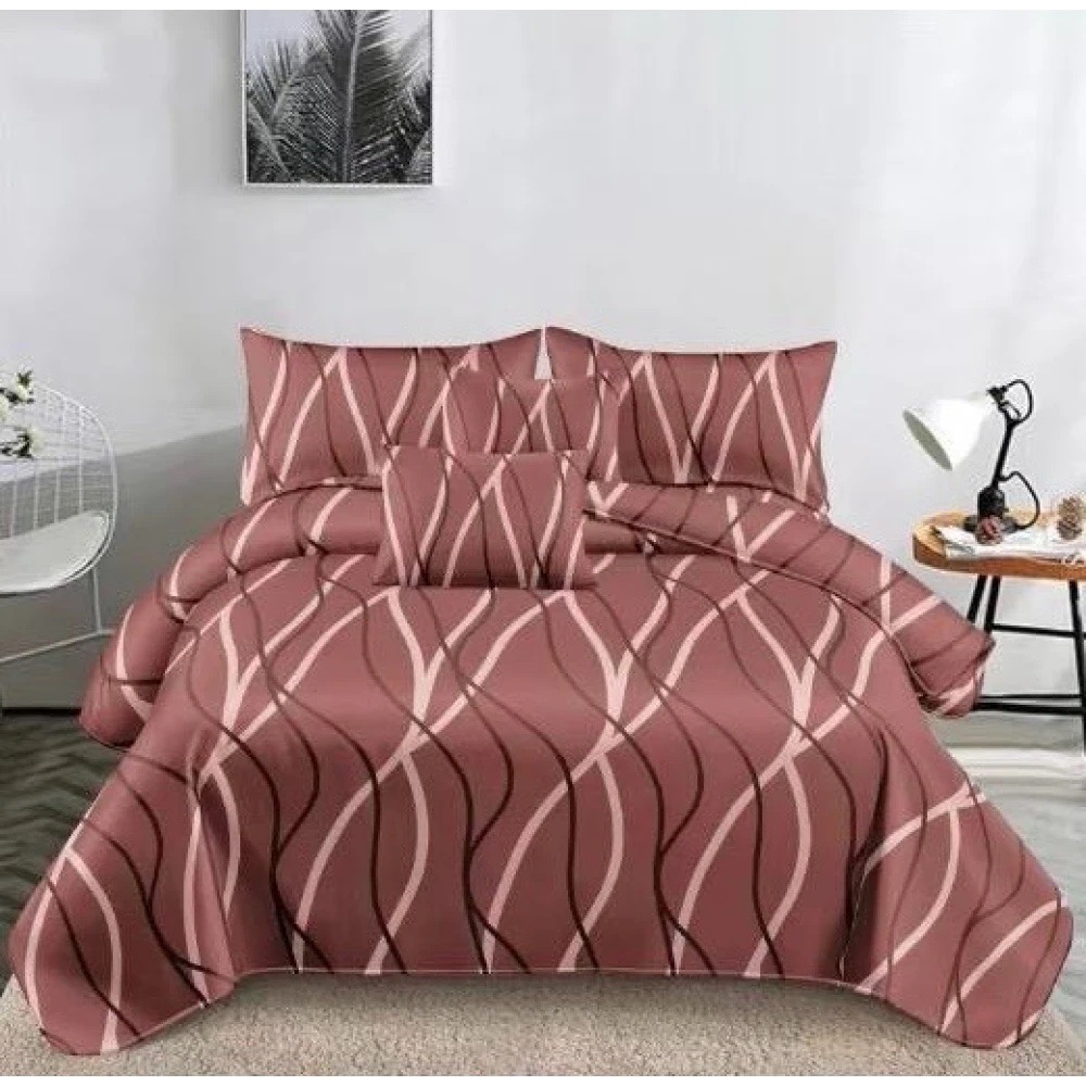 Lenjerie pat dublu, Super Pufoasa COCOLINO,cu ELASTIC, 4 piese, Bej, Linii, Pucioasa Fashion Casa, cod produs: TRP-CE18