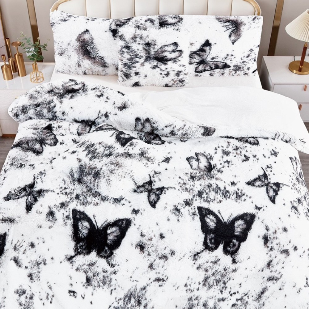 Lenjerie pat dublu, Super Pufoasa COCOLINO Fluffy, 6 piese, Alb, Negru, fluturi, East Romania, cod produs: EST-FL-12