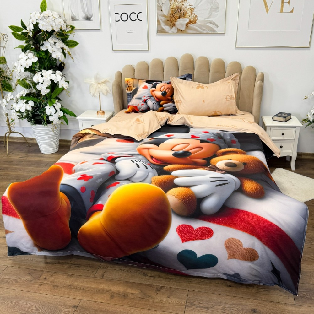 Lenjerie pat single FINET, 4 piese, 100% bumbac – cu imprimeu identic cu fotografia