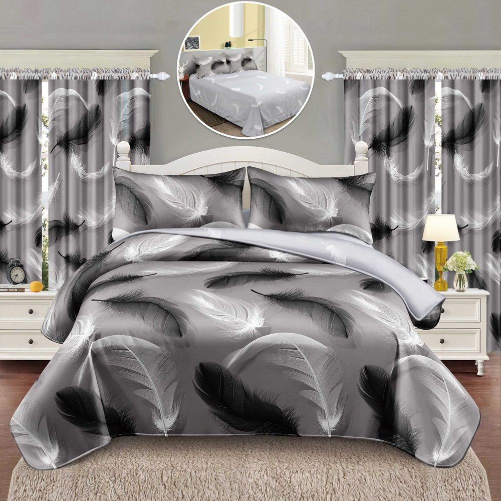 Lenjerie Pat Single, FINET, 6 piese, cu 2 DRAPERII INCLUSE, Gri, pene, Johny Home Pucioasa, cod produs: SPR-SP-09