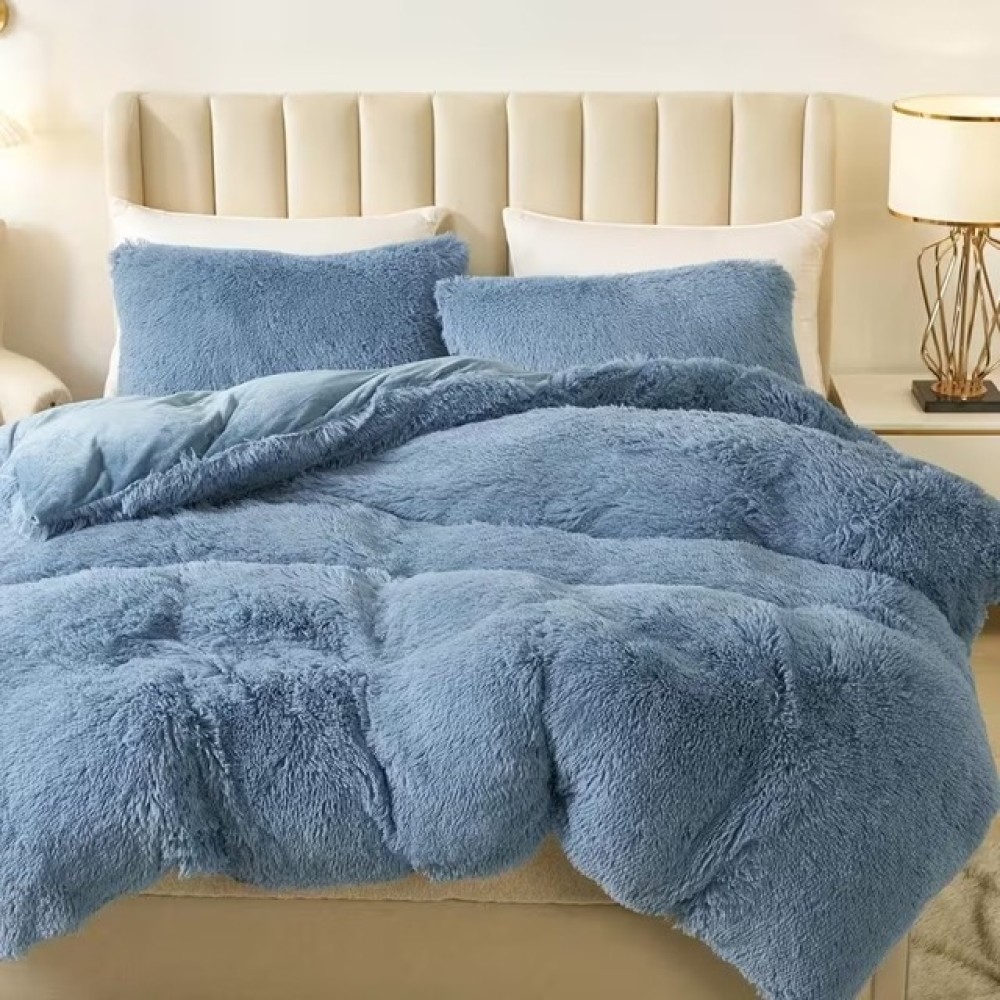 Lenjerie pat super pufoasa COCOLINO Fluffy 4 piese gri albastrui, cod produs: SKT-FL-05