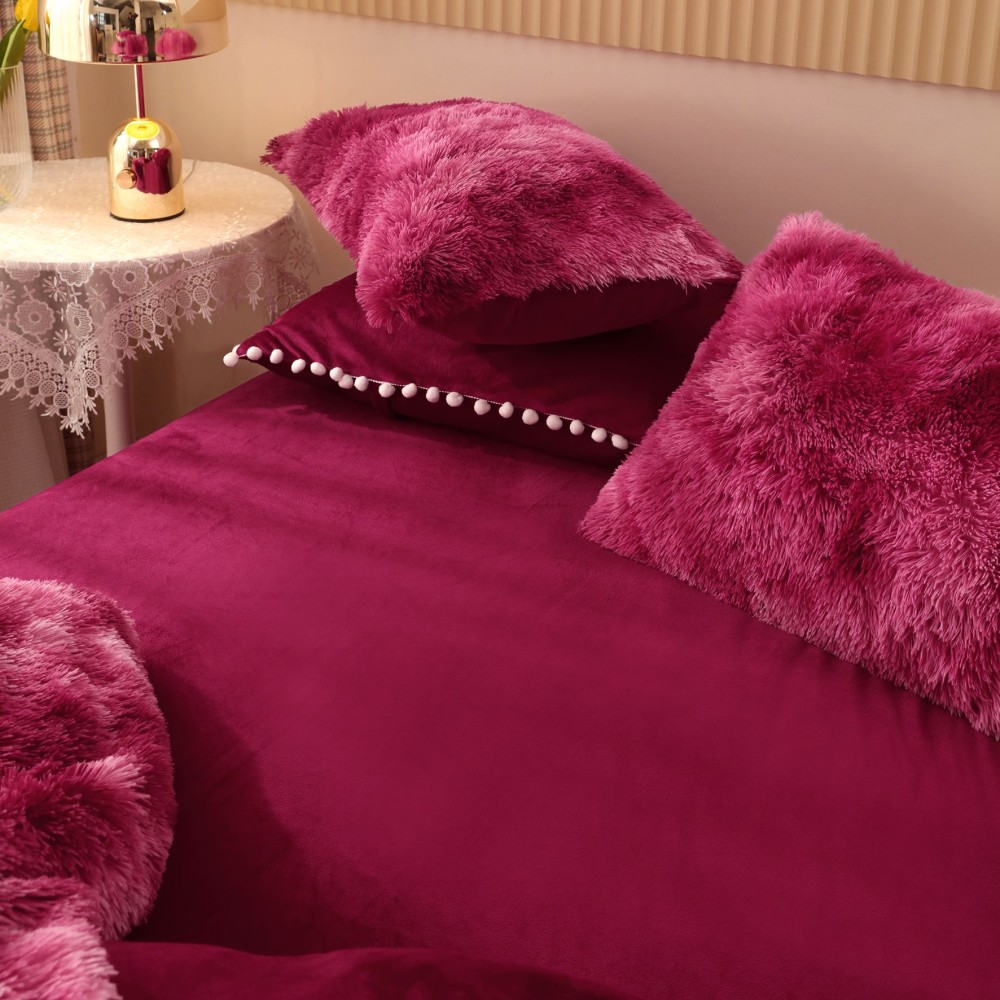Lenjerie pat super pufoasa COCOLINO Fluffy cu ciucuri, 6 piese, Grena - Multicolor, JOJO Home, cod produs: JOJ-CMR-14