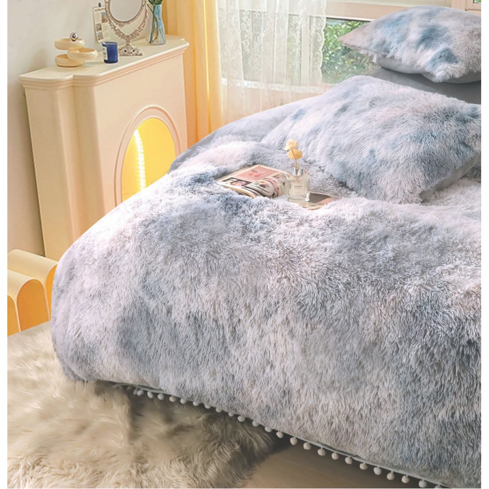 Lenjerie pat super pufoasa COCOLINO Fluffy cu ciucuri, 6 piese, Gri - Multicolor, JOJO Home, cod produs: JOJ-CMR-23
