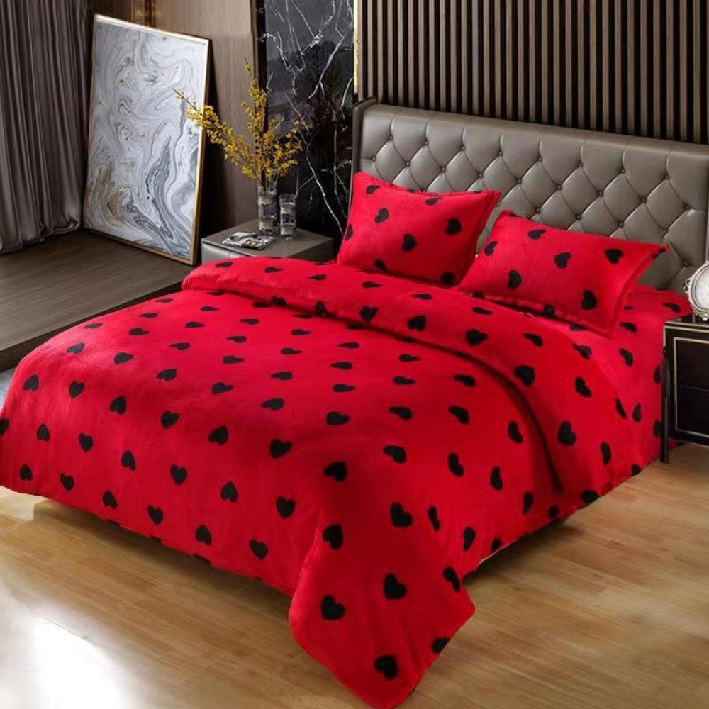 Lenjerie pentru Pat Dublu, Cocolino Premium, 4 Piese – Plușată, Groasă, și Călduroasă, Ideală pentru Iarnă – Confort Maxim, Antișifonare, Rosu, Negru, Inimioare, Pucioasa Fashion Casa, cod produs: TRP-CN18