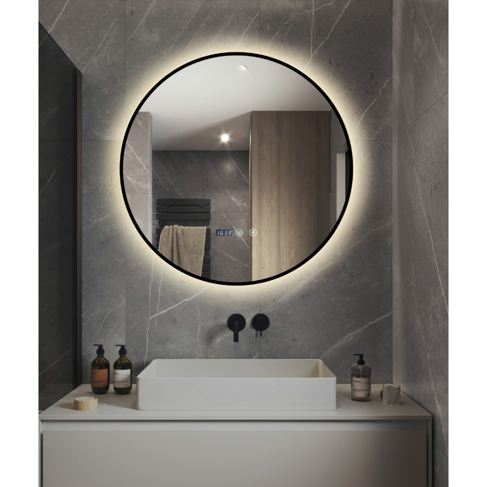 • Dimensiuni și design: Cu un diametru de 60 cm, oglinda se potrivește perfect în băi de diferite dimensiuni, completând un design interior modern și elegant.