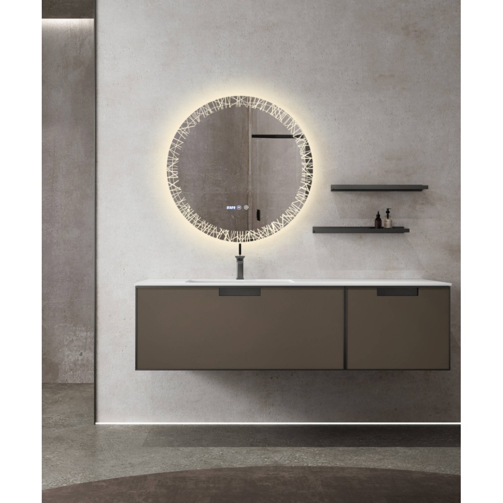 Oglindă de 5 mm fără cupru, bandă luminoasă de tip D cu trei culori cu 120 de lumini, reglare integrată dual-touch + timp, cu folie anti-aburire, bandă de burete pe spate.