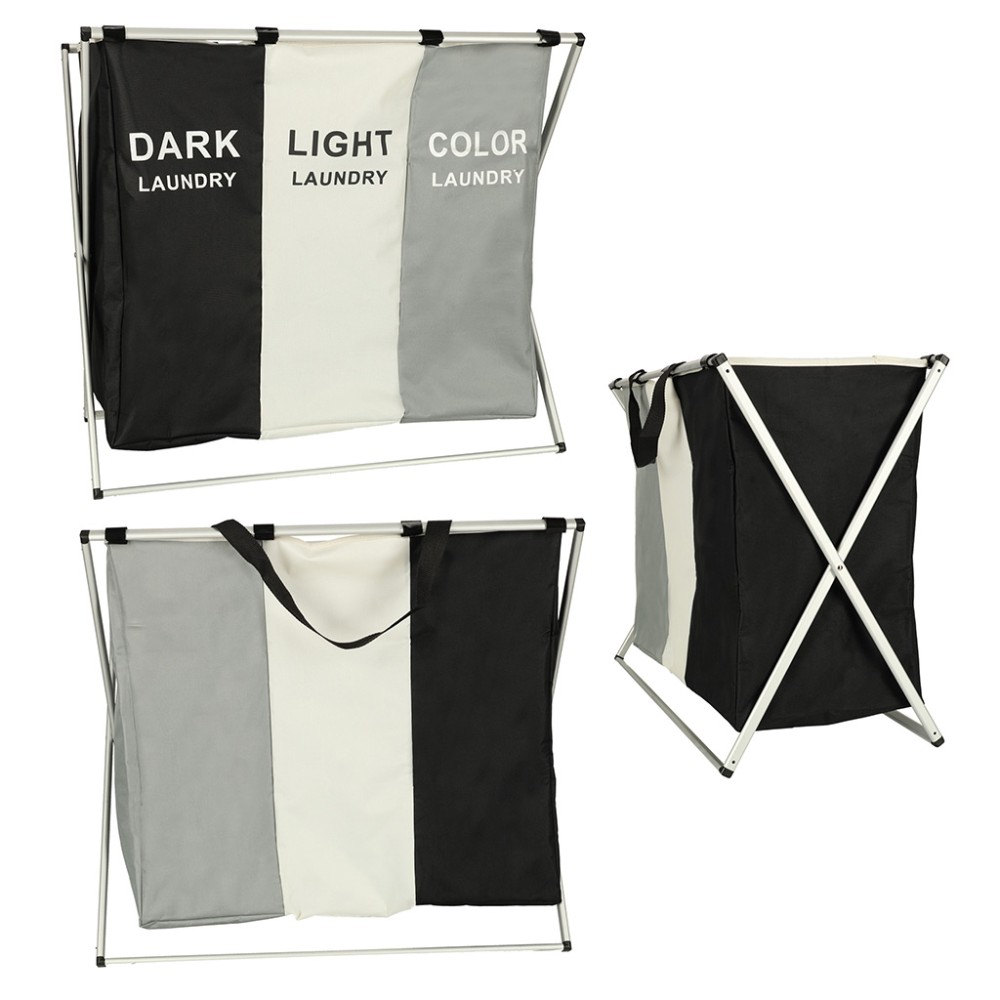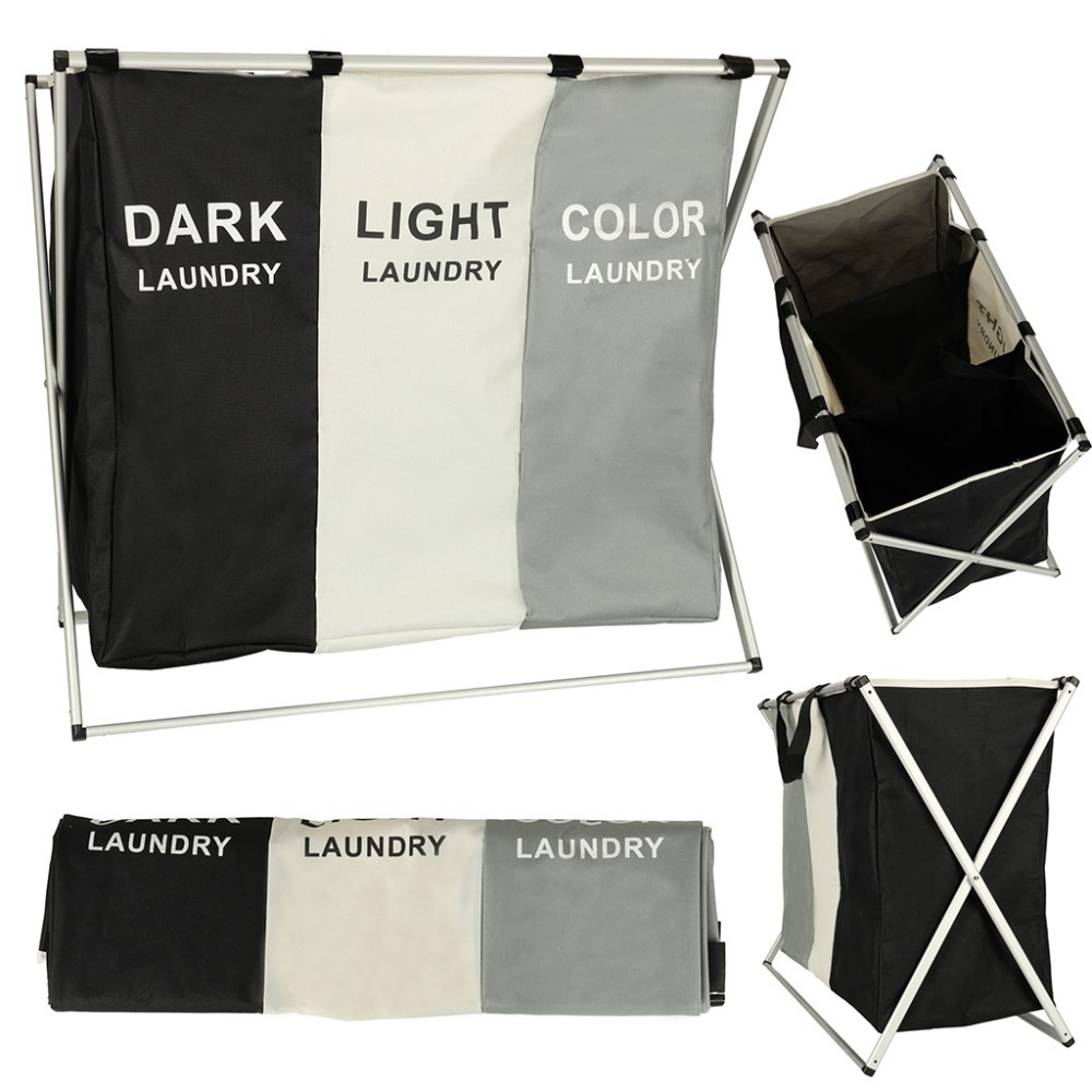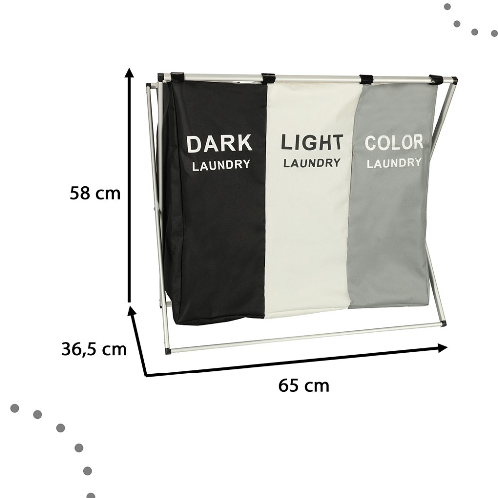 Acest coș de rufe este perfect pentru cei care caută un organizator de rufe mare, cu trei compartimente. Acesta dispune de trei coșuri separate într-unul singur! Fiecare compartiment este semnat și conceput pentru un tip diferit de rufe - negre, albe și colorate - ceea ce facilitează sortarea și organizarea!