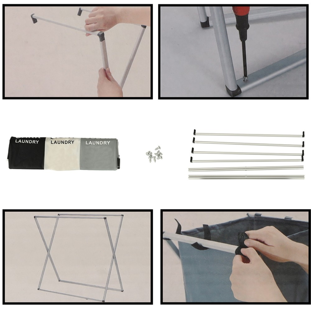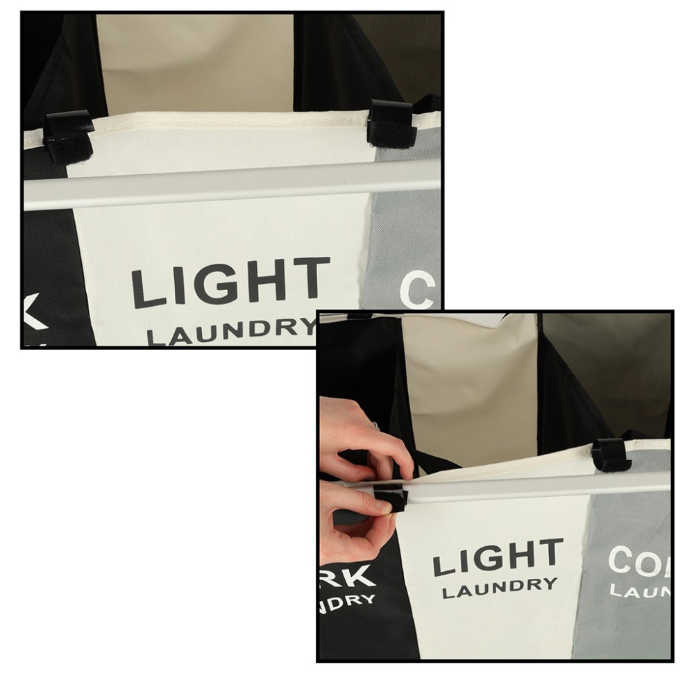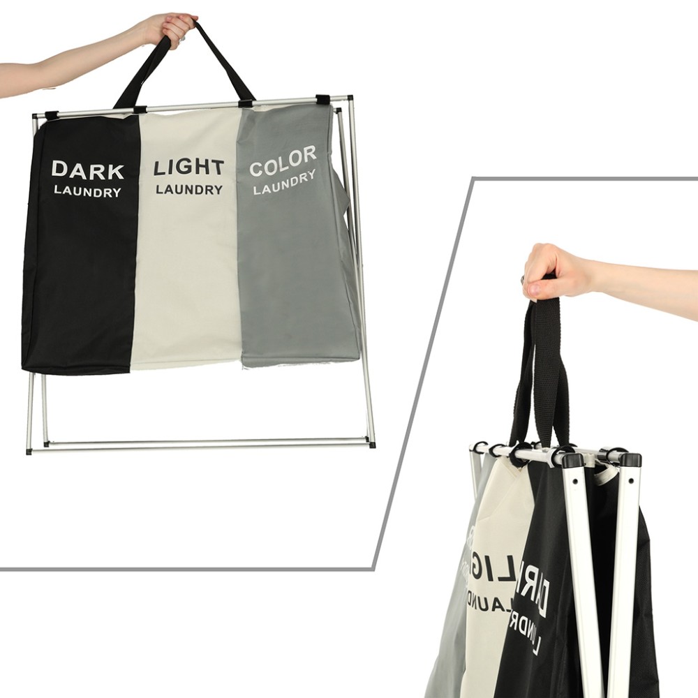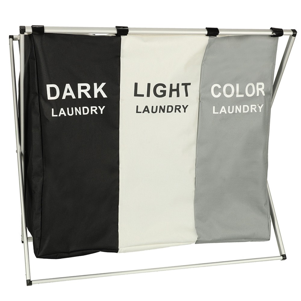 Acest coș de rufe este perfect pentru cei care caută un organizator de rufe mare, cu trei compartimente. Acesta dispune de trei coșuri separate într-unul singur! Fiecare compartiment este semnat și conceput pentru un tip diferit de rufe - negre, albe și colorate - ceea ce facilitează sortarea și organizarea!