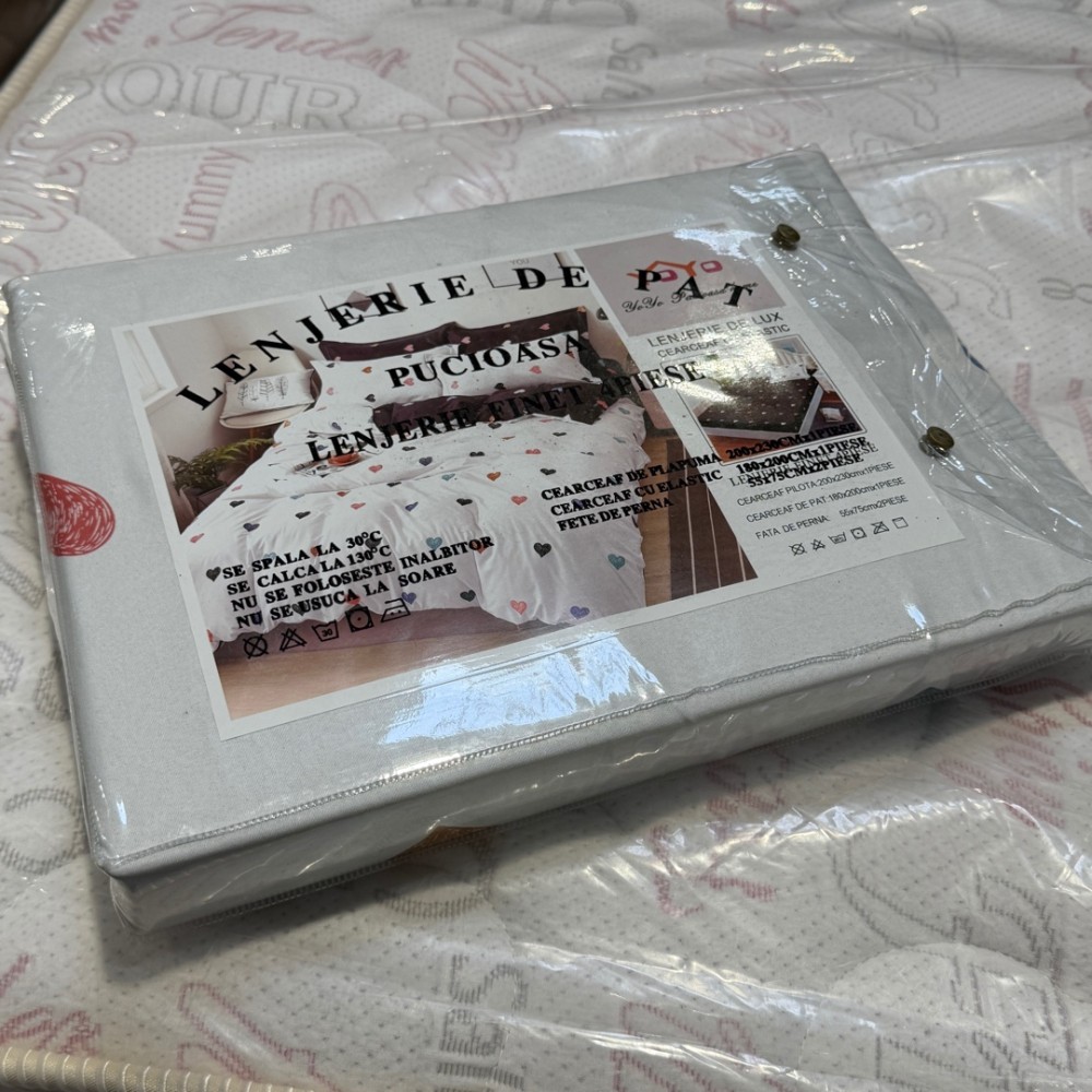 Cearsaf pat 220x235cm, cearsaf pilota 200x230cm, 2 fete perna 55x75cm