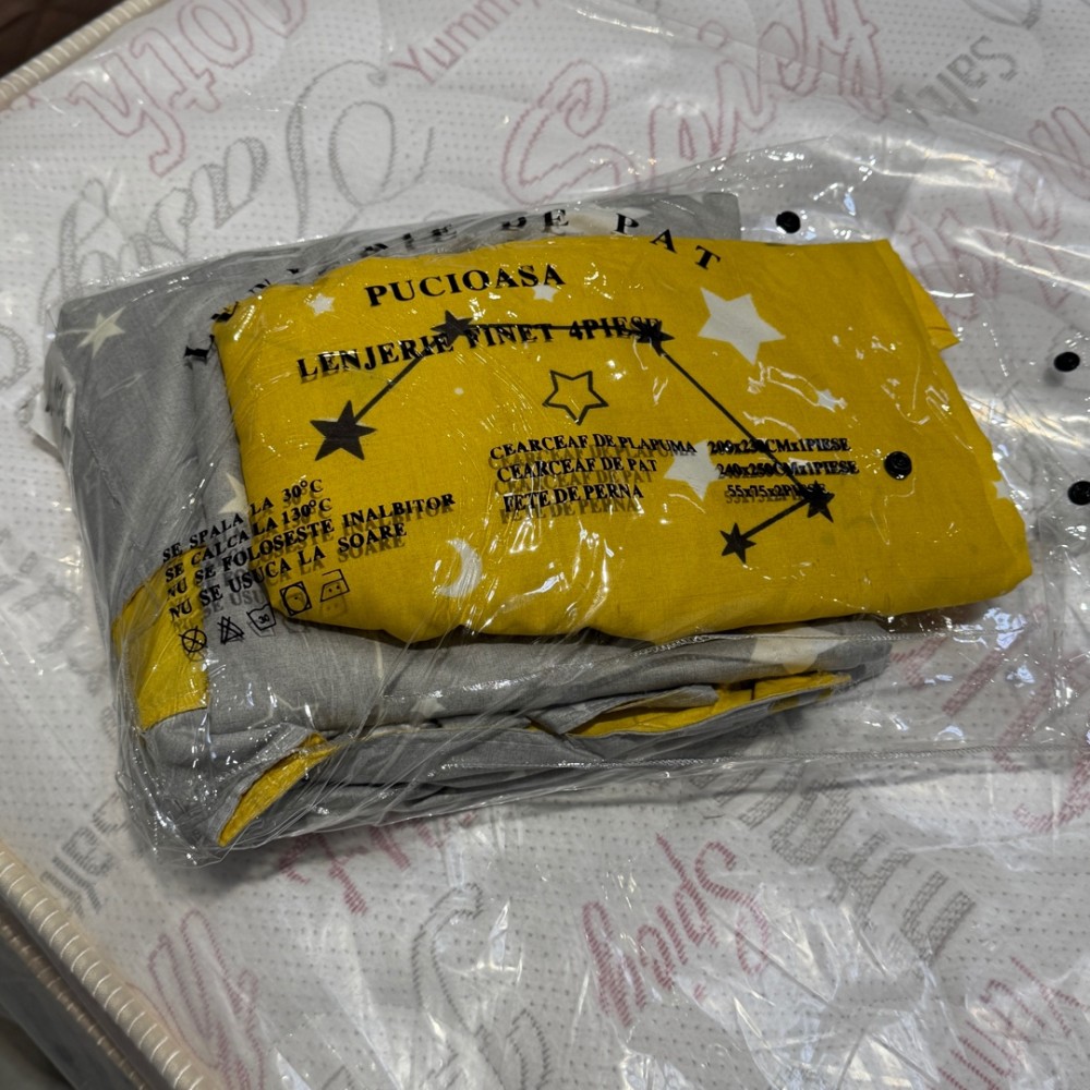 Cearsaf pat 180x200cm, cearsaf pilota 200x220cm, 2 fete perna 50x70cm