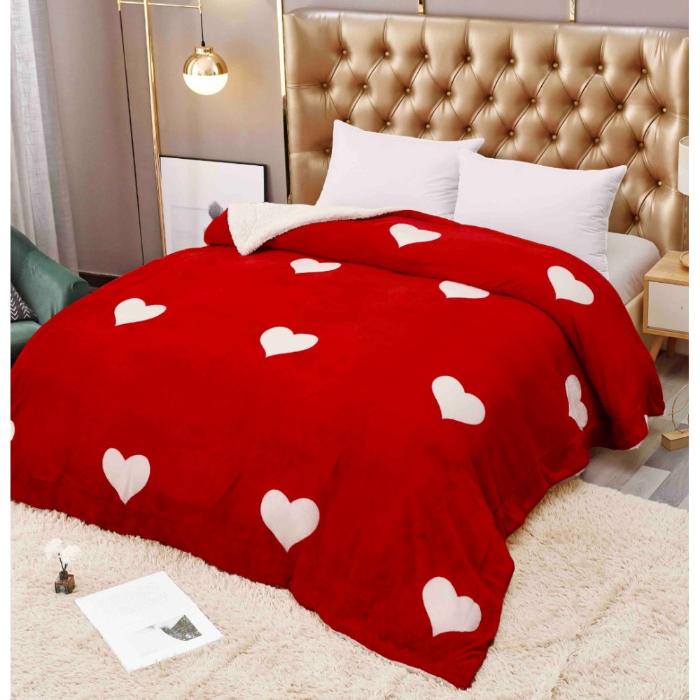 Patura CoCoLiNo cu blanita, 200x230cm, Jojo Home, Rosu, Inimioare, cod produs: JOJ-PCB-26